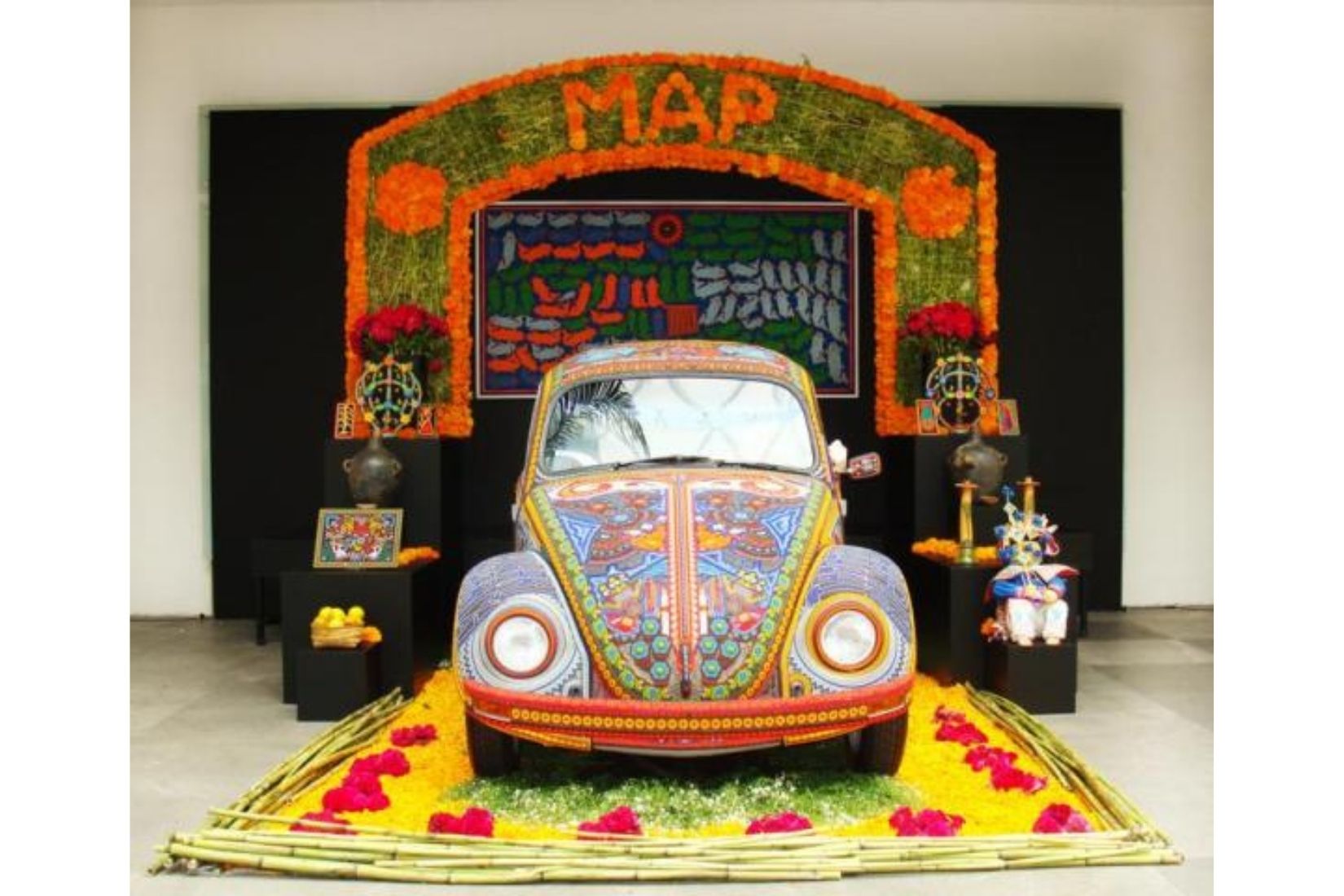 El Vochol® nació de una idea que trajo Marie Thérèse Hermand de Arango de la Feria “Art Basel” en Miami, donde exhibieron un coche intervenido con espejitos que se subastó en una suma altísima y, emocionada, puso en la mesa de AmigosMAP la propuesta de hacer un auto decorado con chaquira por los huicholes, artesanía característica de ese notable grupo étnico.