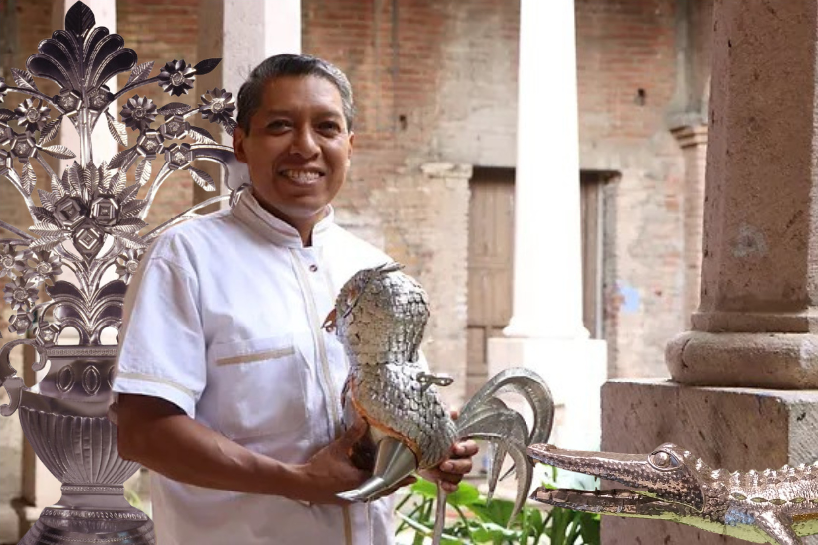 El maestro Tirso Juventino Cuevas Velásquez es un artesano originario de Oaxaca, dedicado al trabajo en hojalatería, siendo el primero en su familia en trabajar esta técnica, en la cual lleva 34 años dedicado.