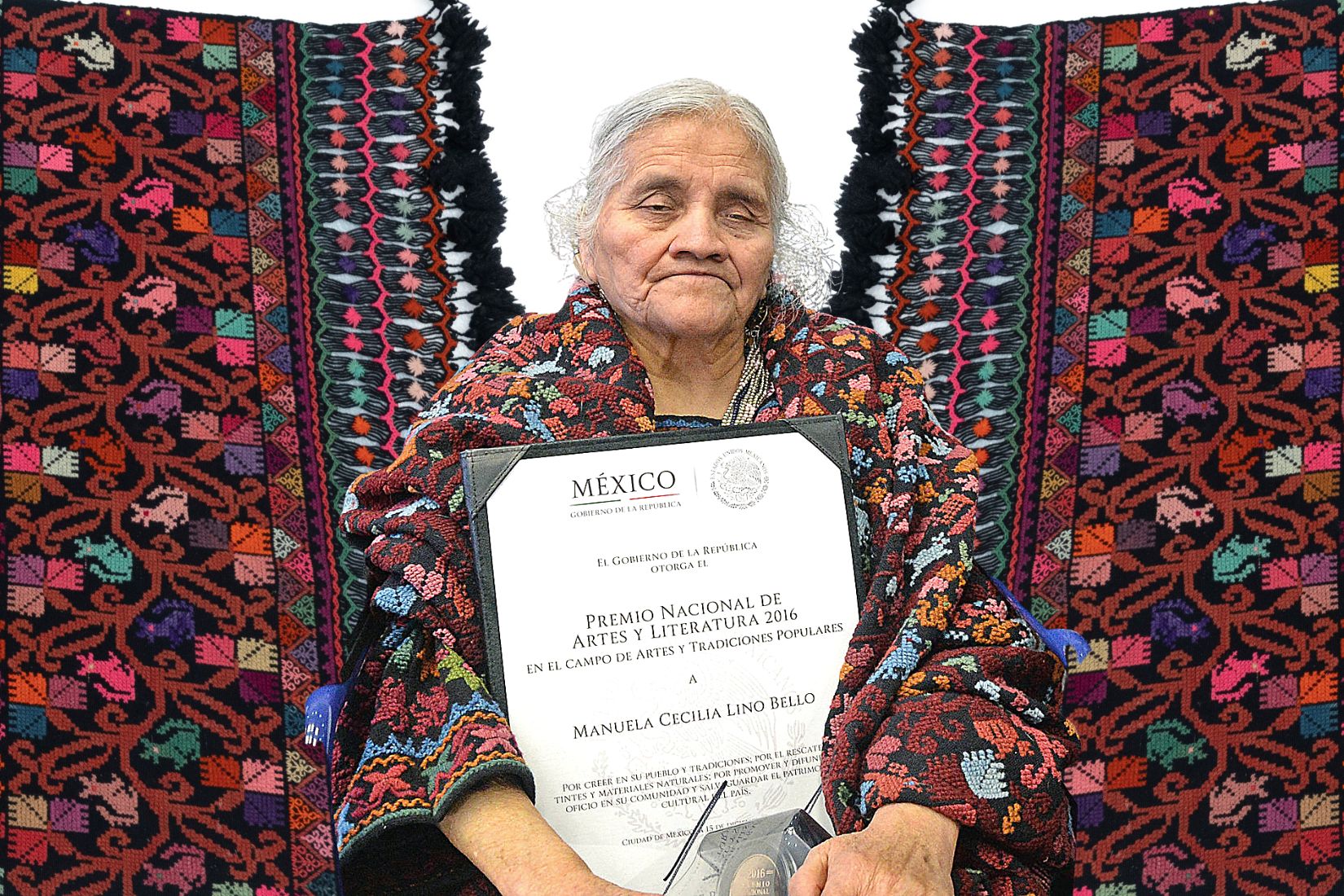 A lo largo de su trayectoria, Cecilia Lino recibió múltiples premios y reconocimientos a nivel nacional e internacional. Su dedicación la hizo merecedora al Premio de Artes y Literatura 2016, en la categoría de Artes y Tradiciones Populares, reconocimiento otorgado de manos del entonces Presidente de la República Mexicana. Además, participó en foros artesanales e impartió talleres para dar a conocer los tintes naturales, tal como un foro organizado por la UNESCO en el año 2006.