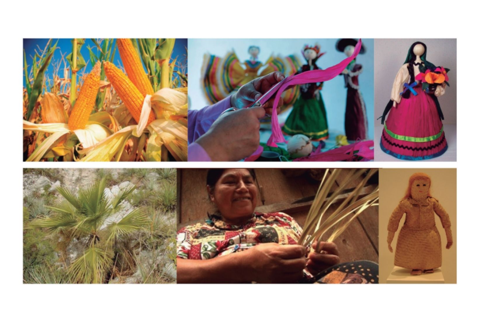 Collage de procesos artesanales utilizando elementos naturales.