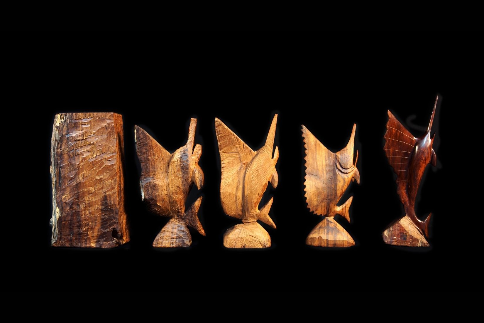 Peces. Raúl de Jesús Espinosa Vázquez, Papantla, Veracruz, Madera ahuecada y tallada, Colección particular // Fotografía: Nicola Lorusso/MAP