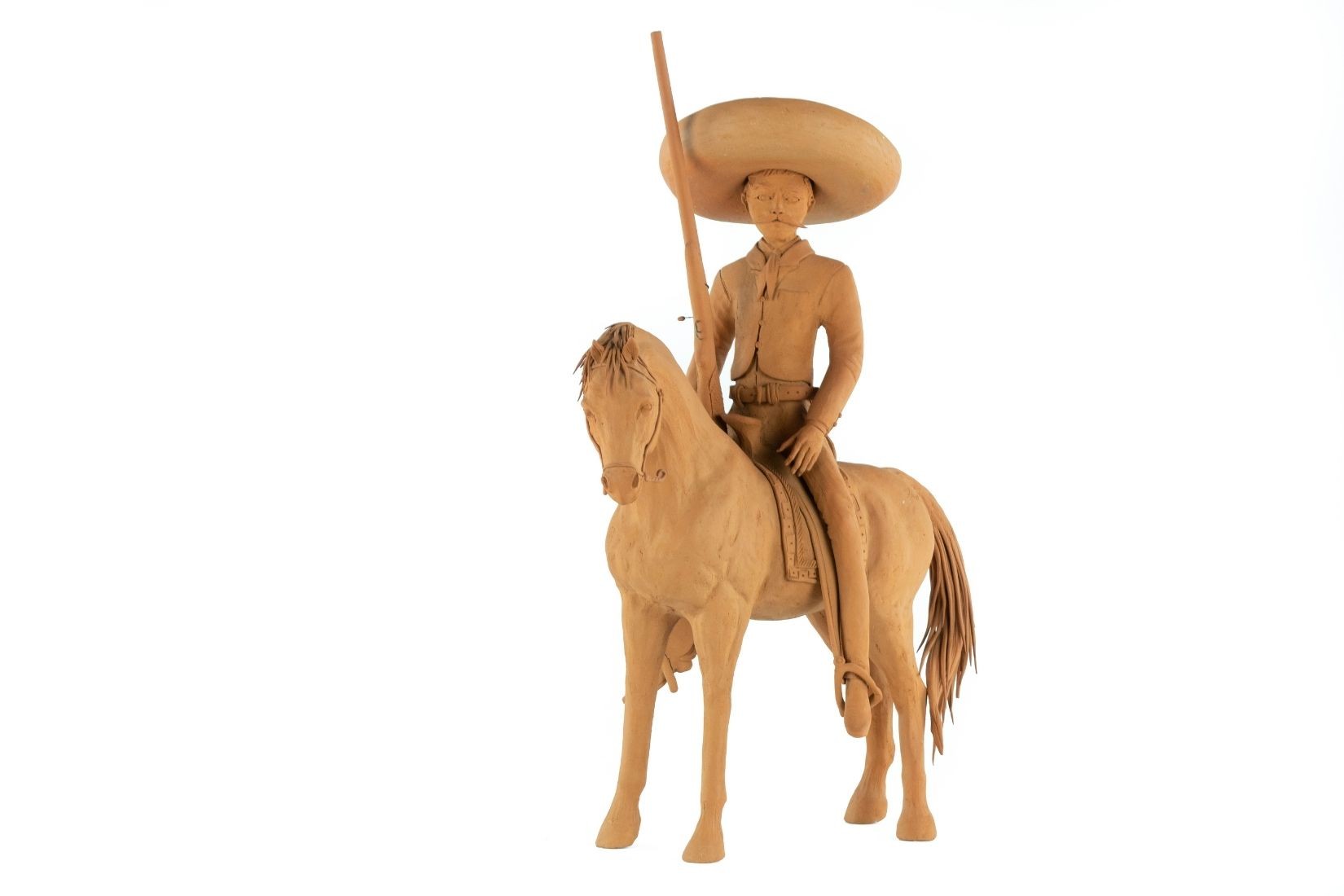 Zapata a caballo de barro natural modelado. Artesano Manuel Leal Jacobo. Michoacán. 2010. Col. MAP. (Foto: EKV).
