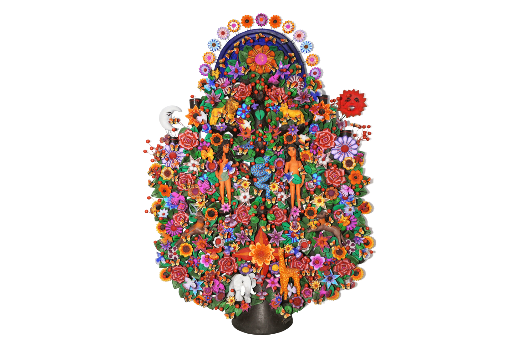 Adán y Eva. Árbol de la vida de barro modelado y policromado. Artesano Heriberto Ortega González. Estado de México. Col. AmigosMAP. (Foto: EKV).