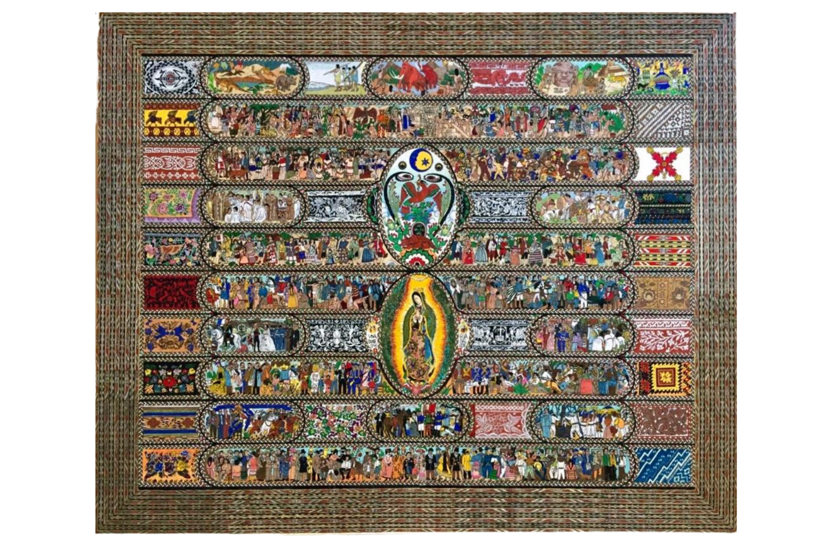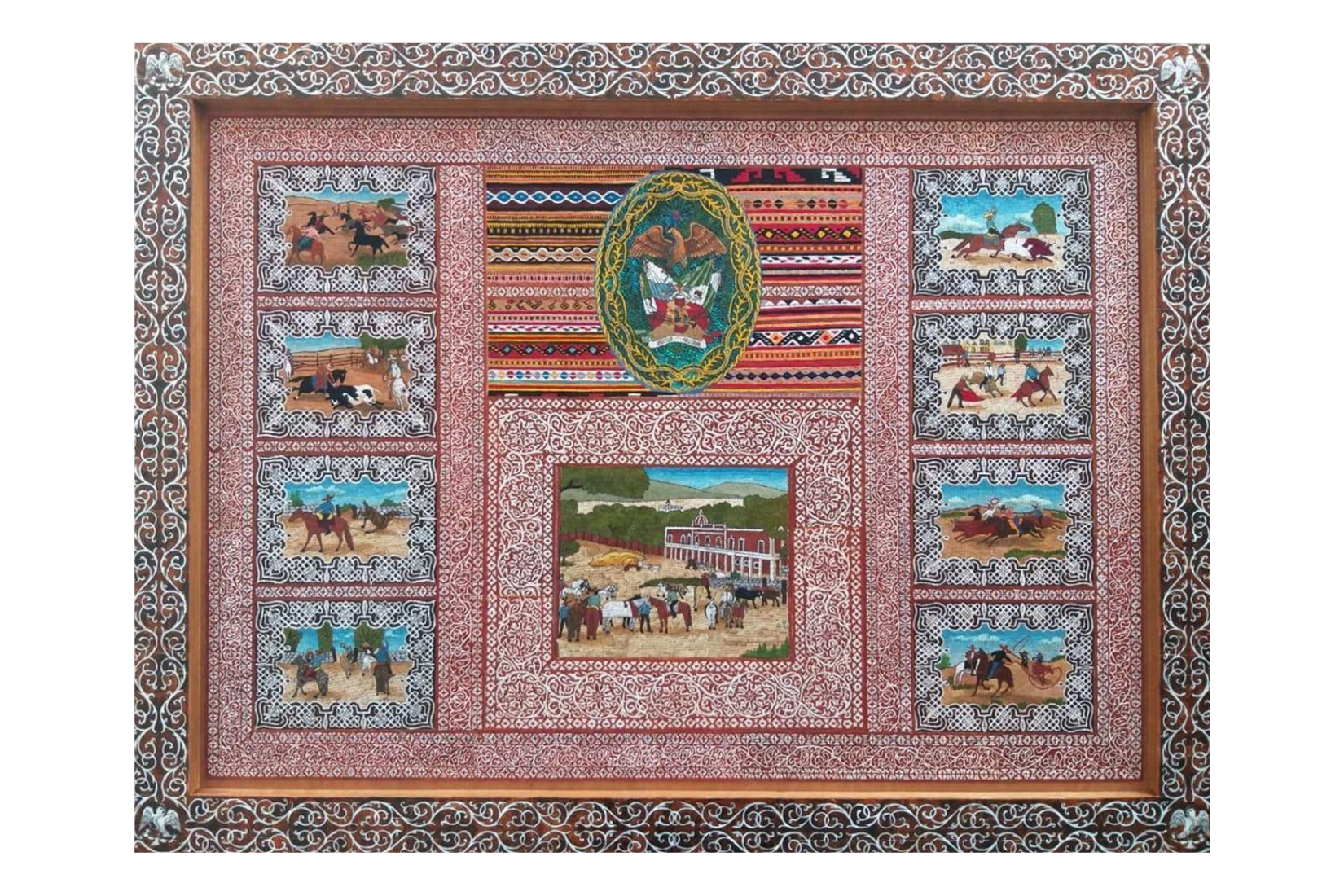 Historia de México. Plumaria enmarcada. Artesano Eduardo Sánchez. San Luis Potosí. Col. AmigosMAP.
