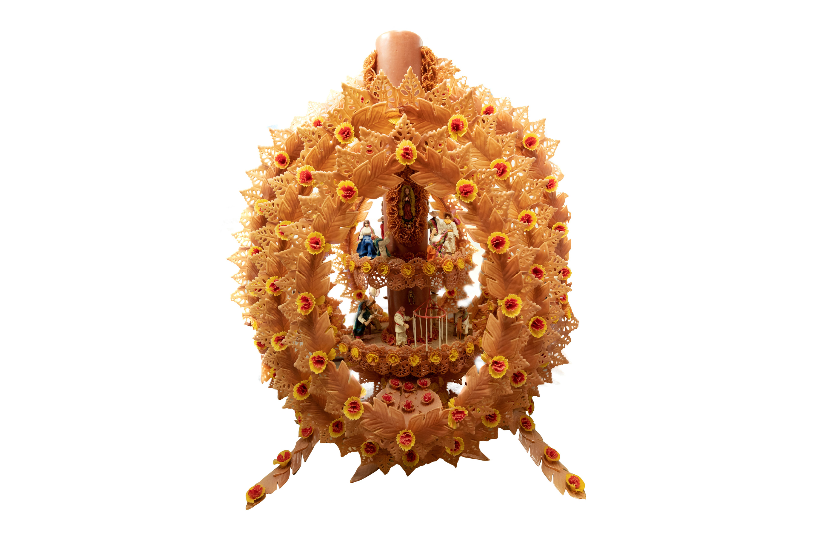 Vela monumental. Cera escamada y modelada. Velas Decorativas de Salamanca. Col. Ramón Ramírez López. Salamanca, Gto. Pieza donada a AmigosMAP. (Foto: EKV).