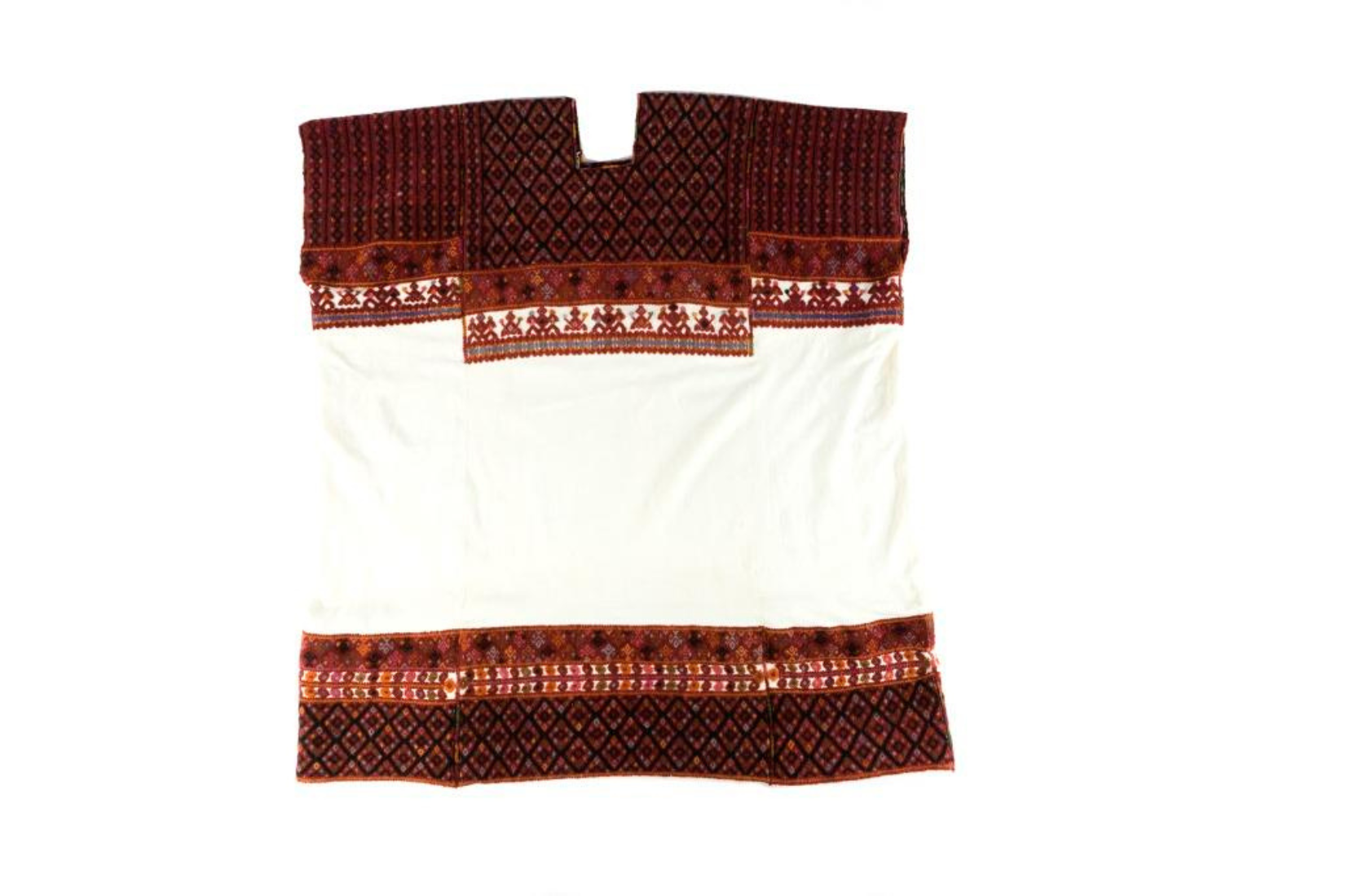 Huipil ceremonial. Textil entintado y brocado. Chiapas. Col. AmigosMAP. (Foto: EKV).
