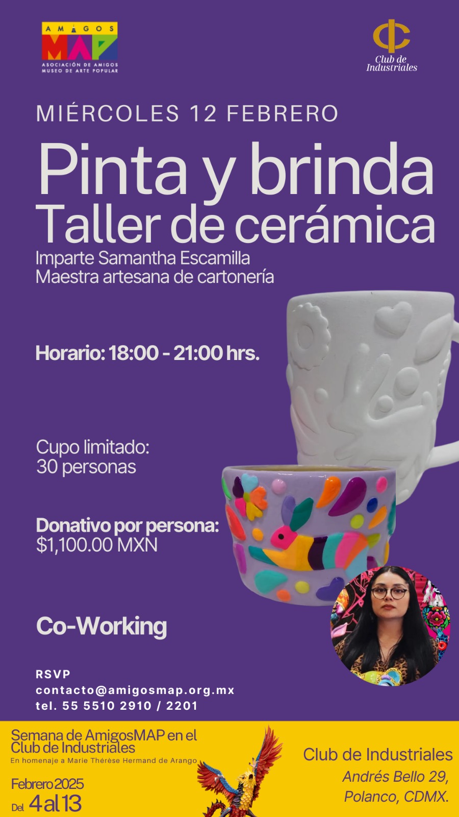La Asociación de Amigos del MAP, A.C. y el Club de Industriales tienen el gusto de invitarlos al cierre de la Semana de AmigosMAP, en honor a Marie Thérèse Hermand de Arango.