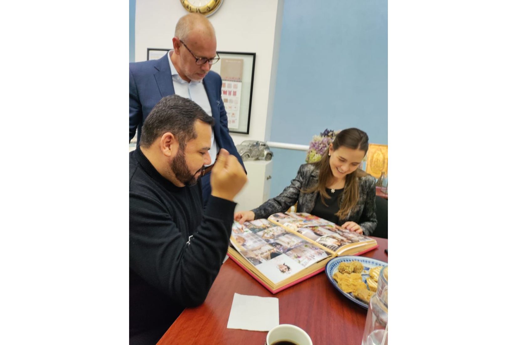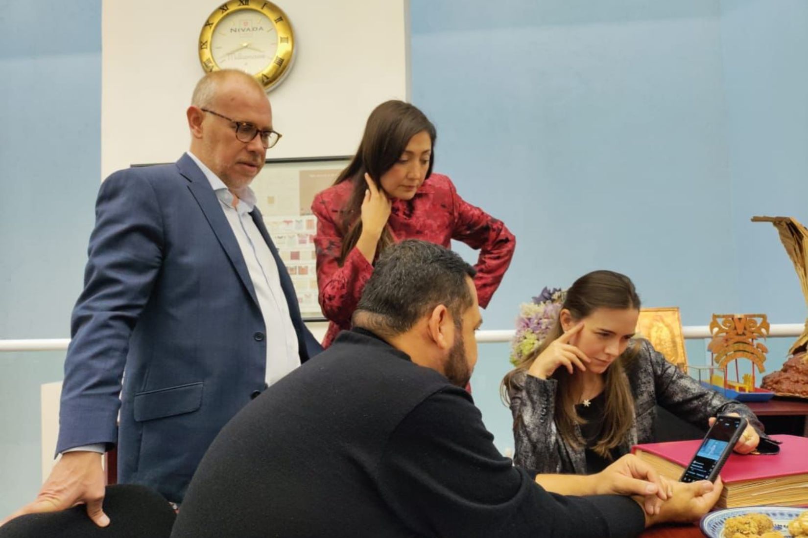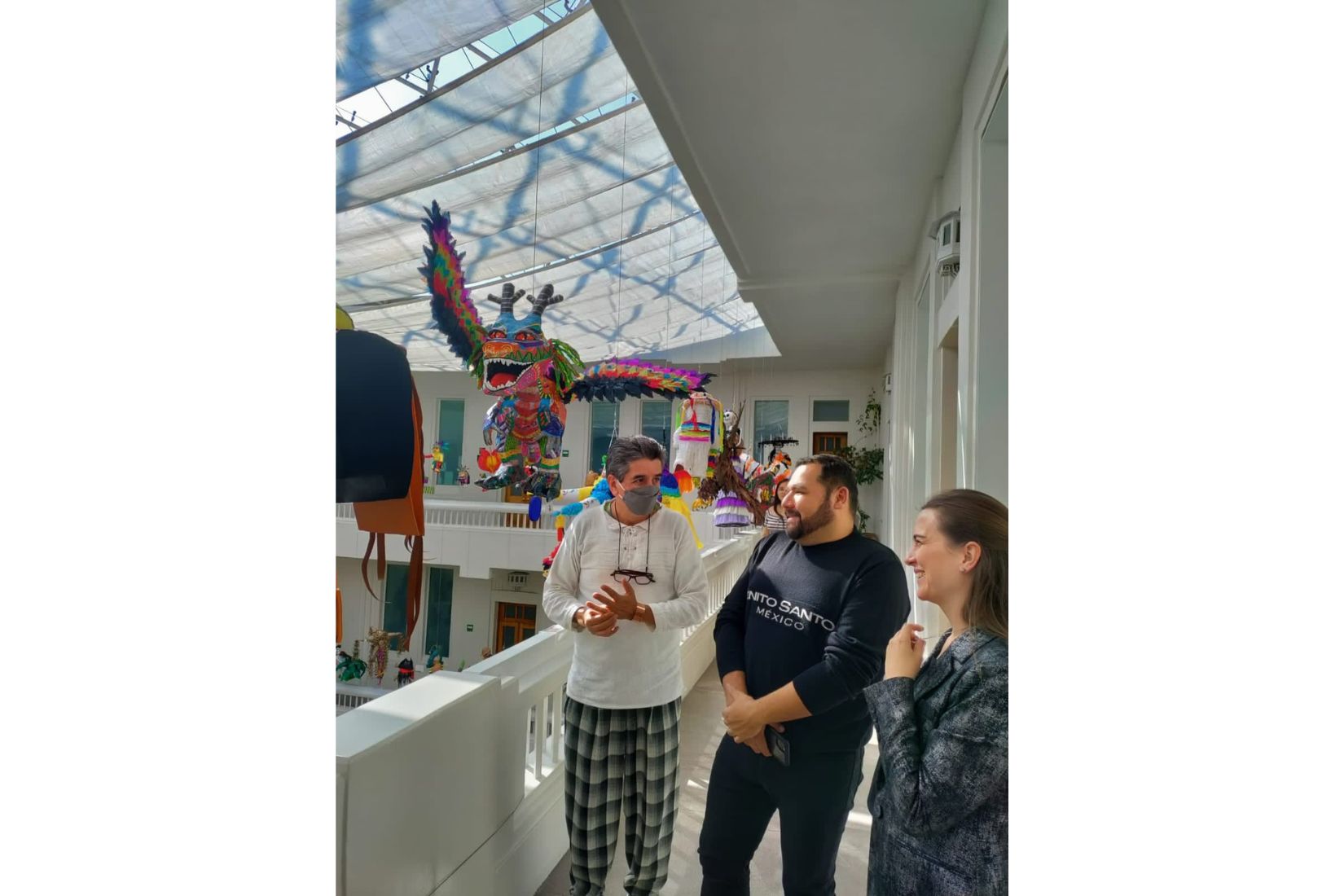 Mercedes Vigil y Zaira Marino del patronato, con el apoyo de Francisco Suárez colaborador de AmigosMAP, recibieron a Benito Santos para una visita guiada dentro de las salas permanentes del MAP y posteriormente tuvieron una reunión donde se le platicó más de la labor y trayectoria de la Asociación de AmigosMAP.
