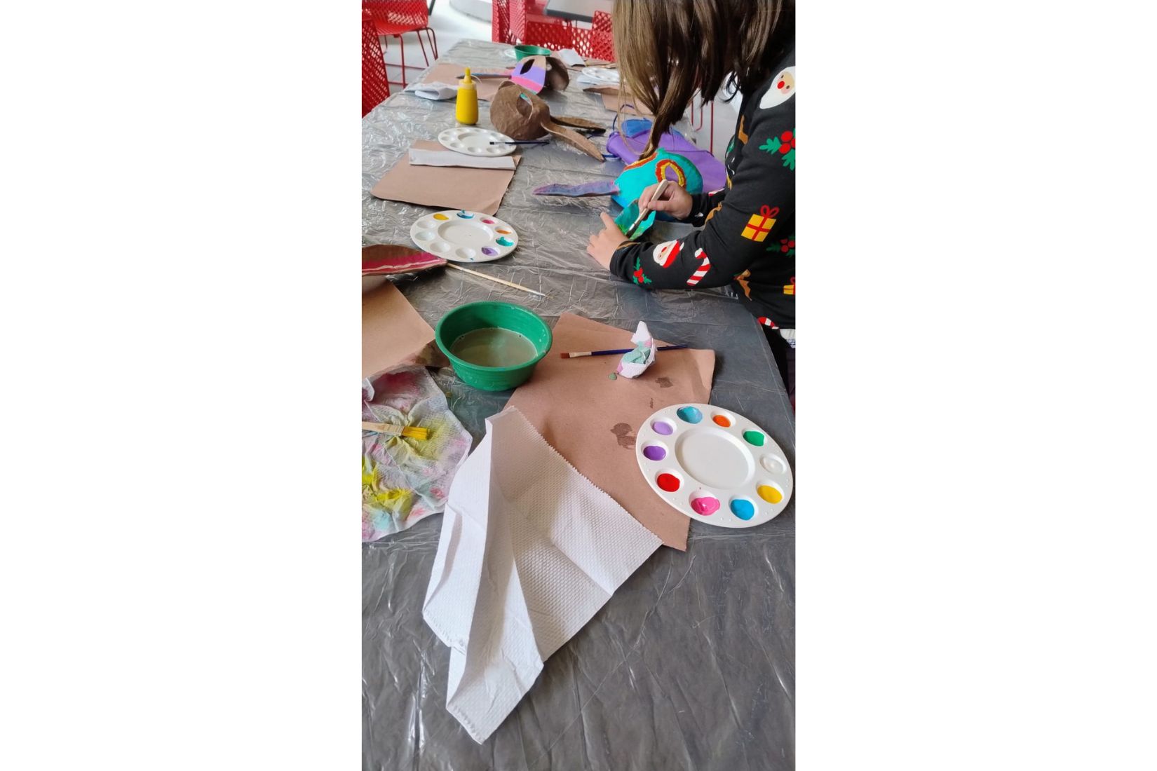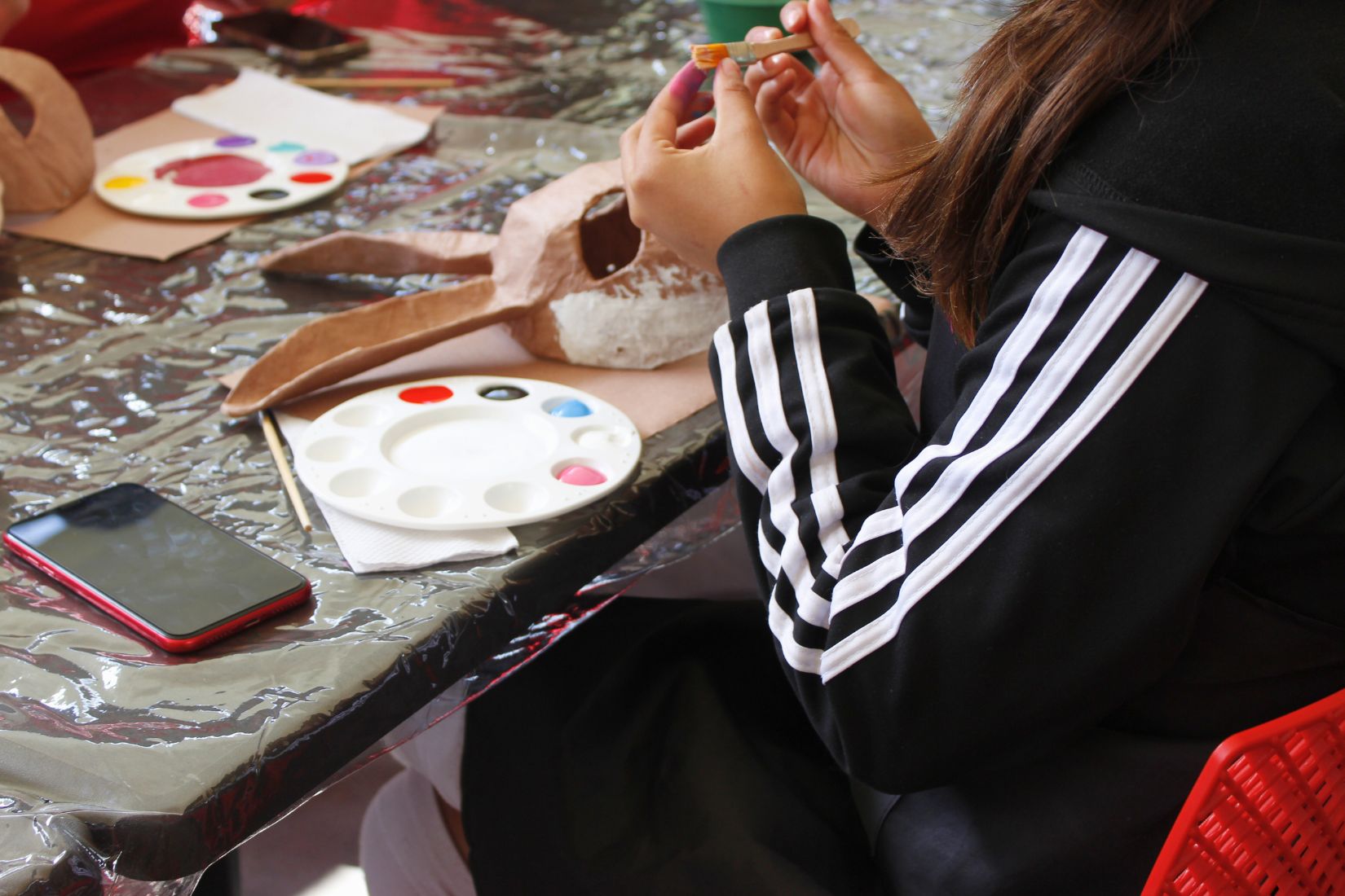 - Pintar máscaras de cartonería junto con la artesana Devany Gutiérrez.