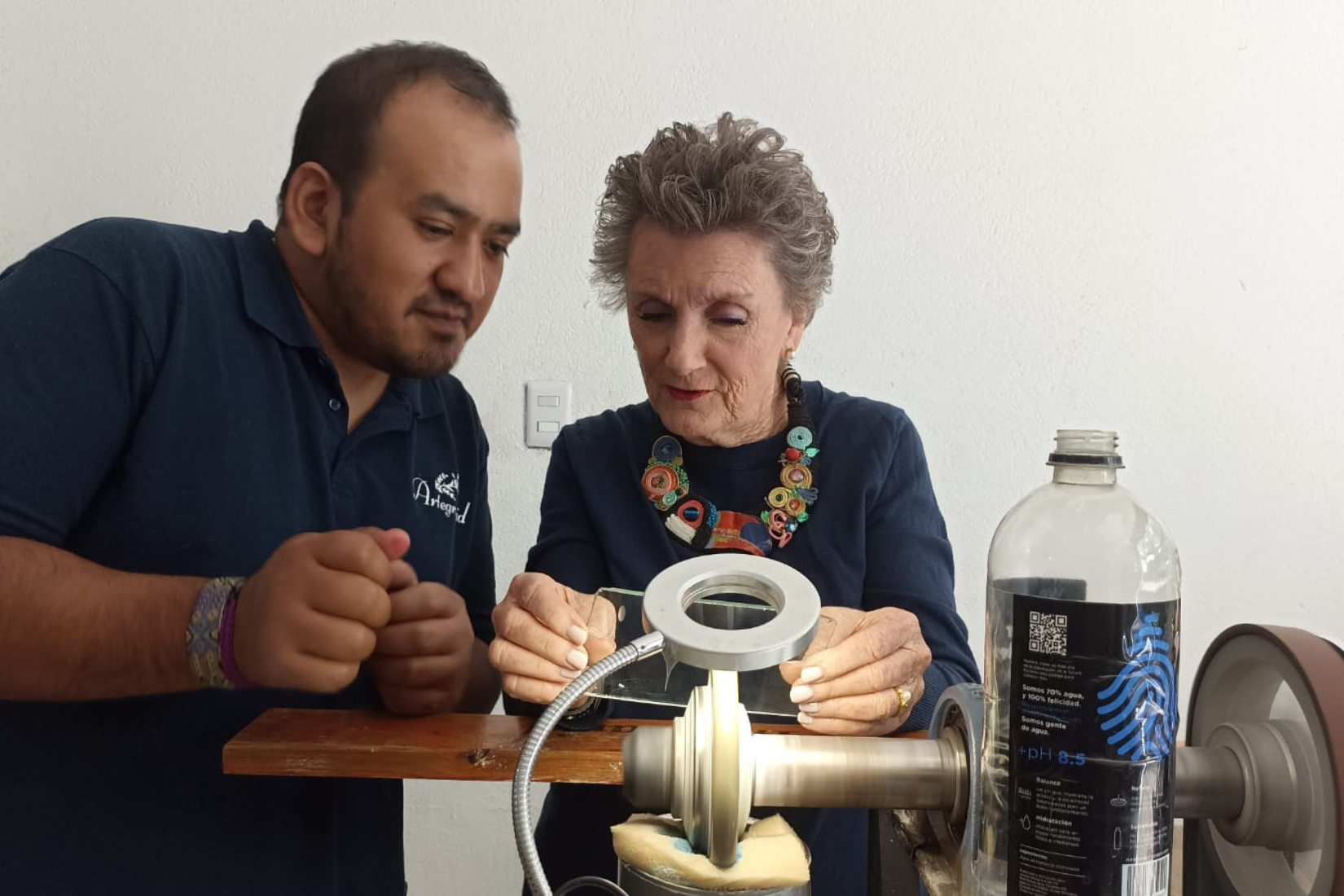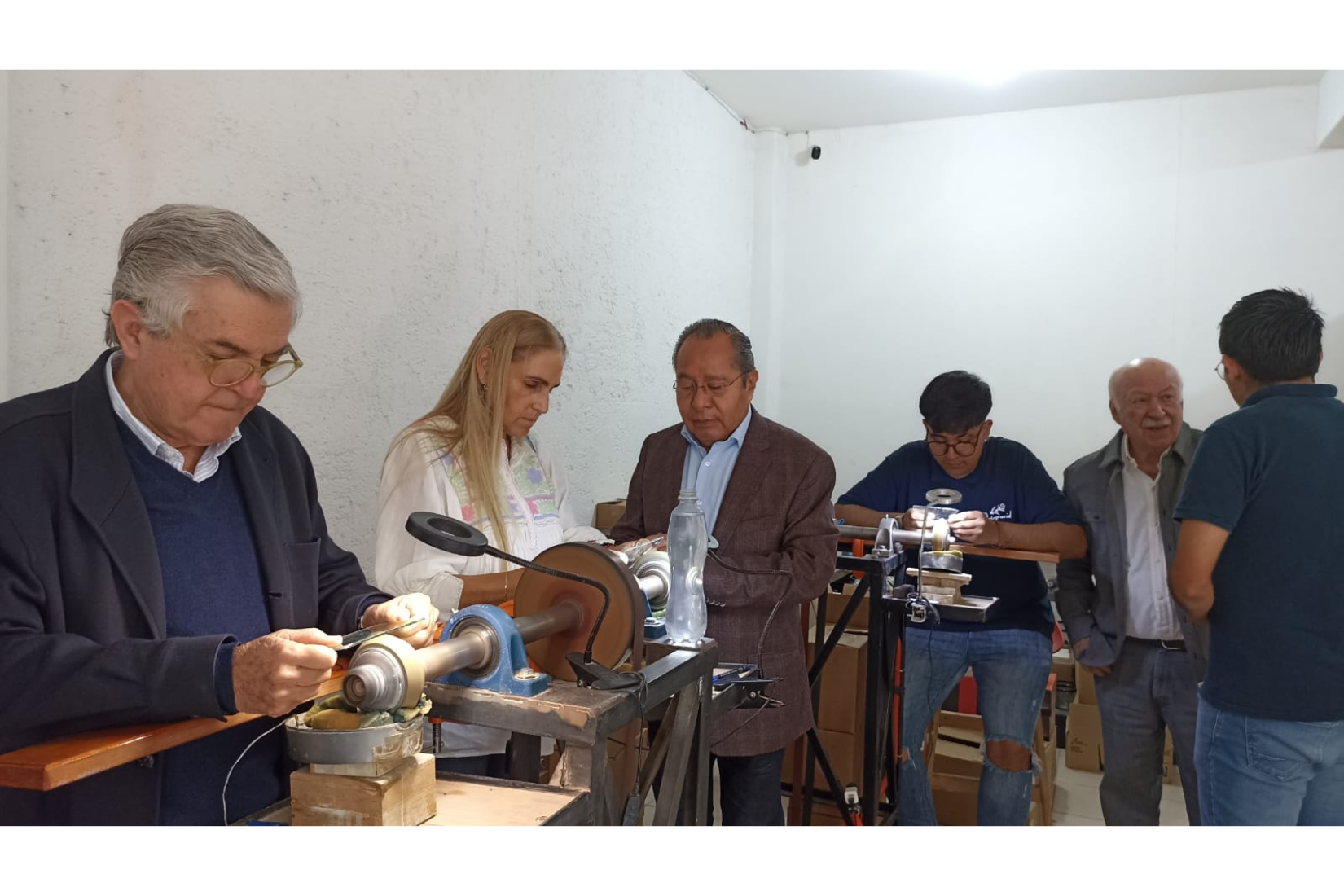 Mercedes Vigil, presidenta de AmigosMAP, acompañada de los patronos Maureen Spilk, Mónica Abedrop, Mónica Brockman, Maricarmen Vigil, Francisco Pérez de Salazar, Bruno Newman tuvieron un espacio para practicar el tallado y aprendieron un poco de la técnica. Posteriormente visitaron la galería que se encuentra arriba del taller donde se muestran increíbles piezas con distintos tipos de acabados.