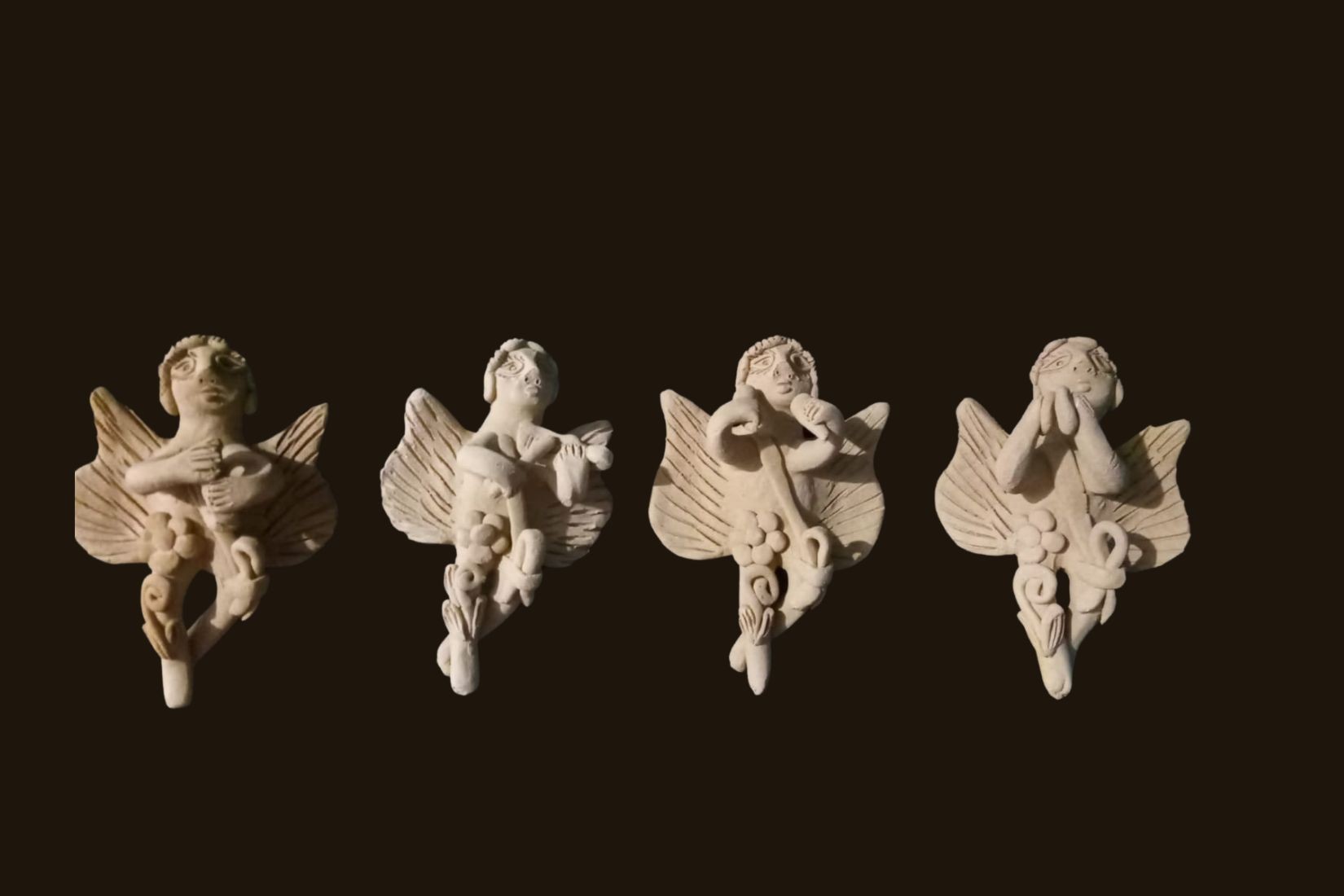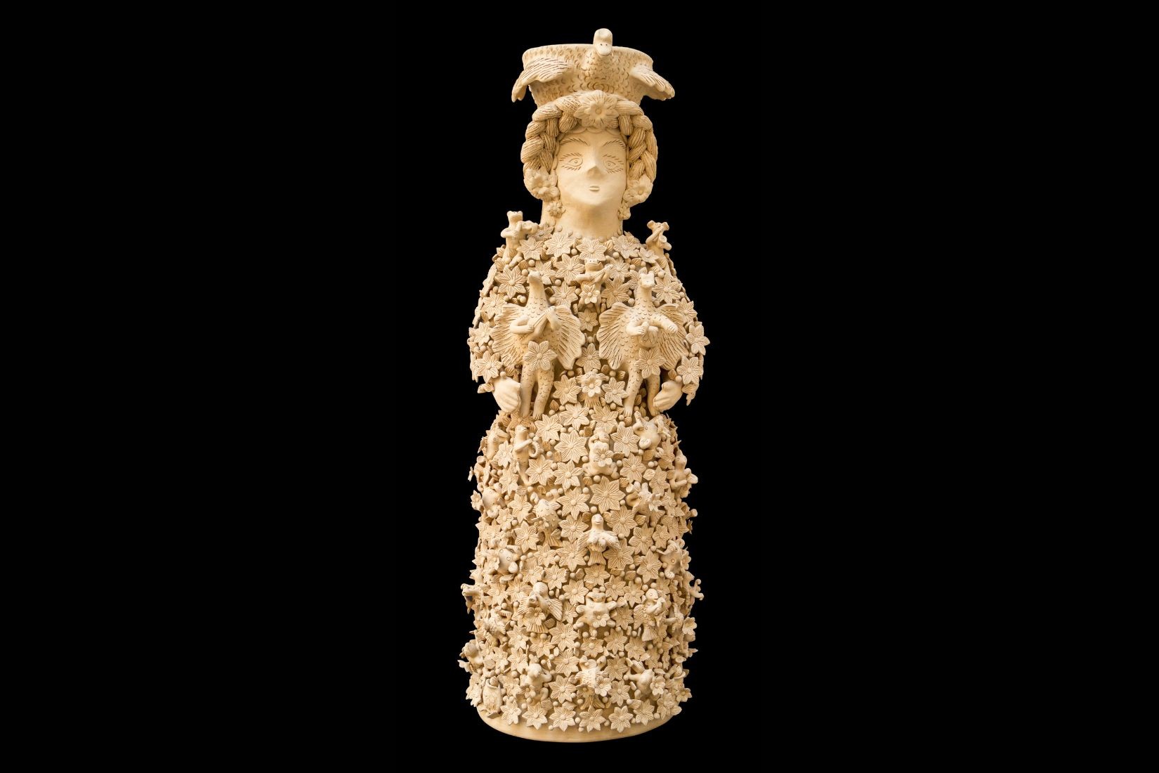 Las piezas más características que realizan en su taller son muñecas, vírgenes, nacimientos, sirenas, árboles de la vida, etc., las cuales pueden ser de gran formato, de más de un metro de altura o minis, de 10 cm de alto. En la realización de las piezas grandes trabajan por partes, comenzando por abajo, hacia la cintura, donde comienzan con la decoración donde se incluyen flores y pequeños animales, luego el pecho y la cabeza que, en el caso de las muñecas, en la mayoría de las ocasiones también va decorada con algún animal.