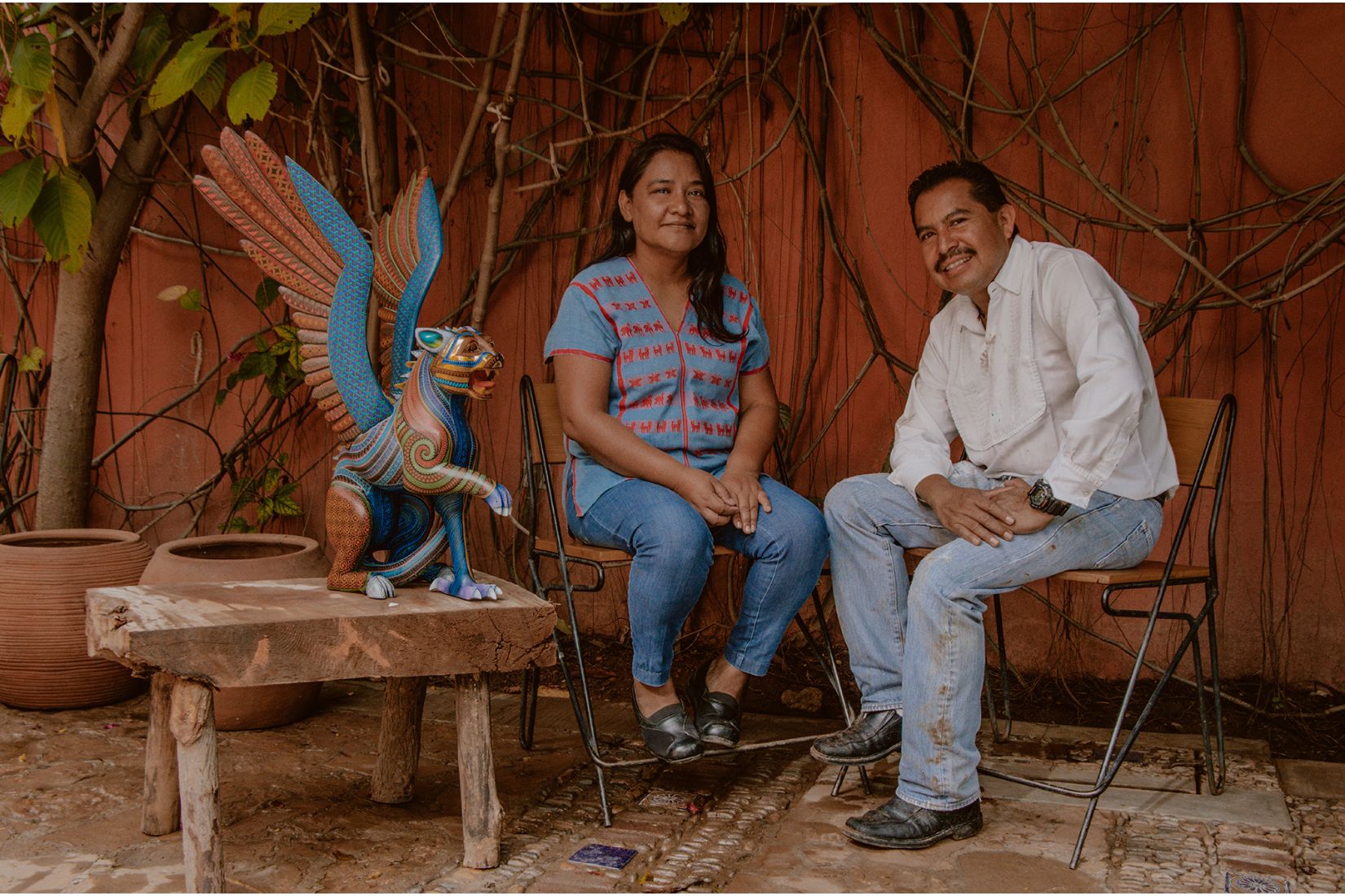 Comprometidos y preocupados por el bienestar con su comunidad y la naturaleza, crearon el proyecto Palo que habla, donde enseñan a sus alumnos a reforestar y con ello, disminuir la huella de carbono. En su taller plantan árboles de copal que van cuidando y cuando crecen estos mismos los utilizan para la creación de sus piezas. Con estas acciones procuran además el bienestar de su comunidad.