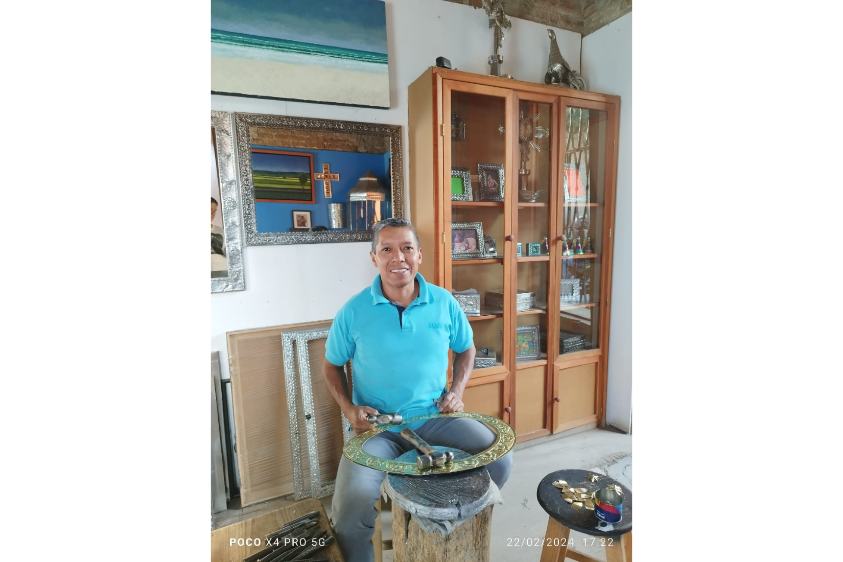 El Maestro Cuevas fue aprendiendo y perfeccionando la técnica dentro del taller y colaboró con el Maestro pintor Rodolfo Morales en la creación de marcos para enmarcar su obra. Actualmente Tirso lleva 23 años trabajando con la hojalata.