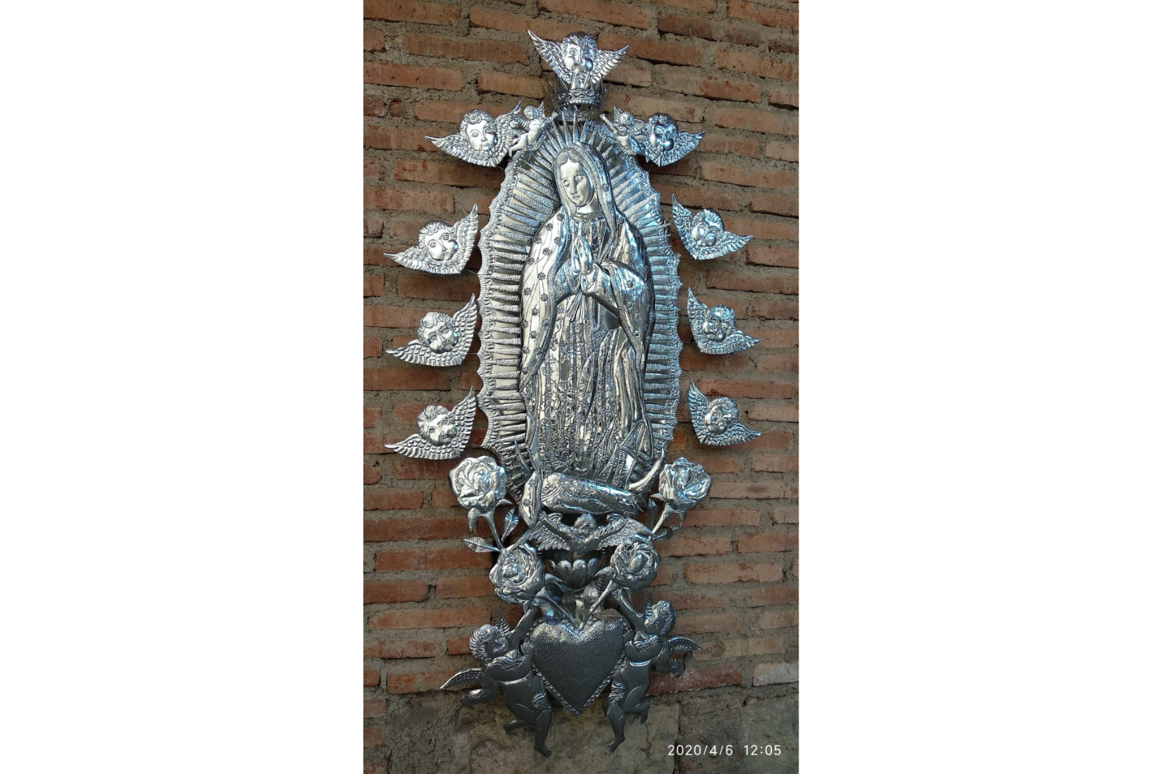 Dentro de las piezas más pequeñas que elabora se encuentran pequeños alhajeros, espejitos, portarretratos y angelitos. Como parte de las piezas de gran formato se encuentran las que ha realizado para el MAP, un pavo real que creó para Atelier Casa Abierta y una cabecera en la que está trabajando actualmente.