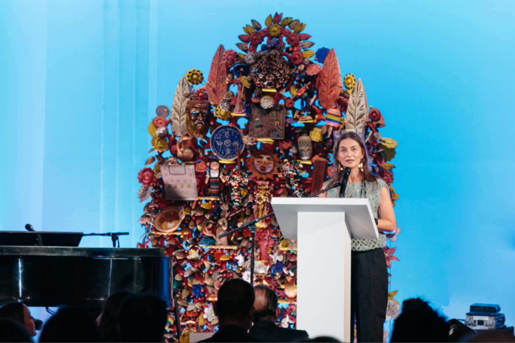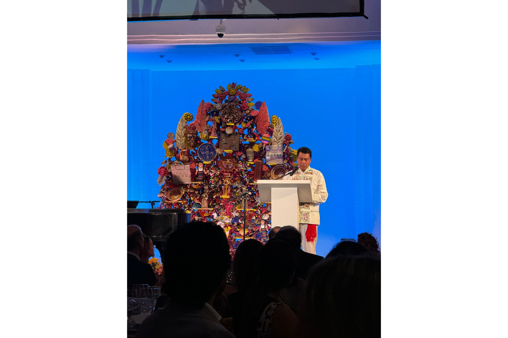 Mercedes Vigil, Presidenta de la Asociación reconoció “El arte popular Mexicano es un legado cultural que le pertenece a todos”. Recordó que AmigosMAP germinó de una idea hasta convertirse en lo que es hoy. “Con una visión clara por preservar y promover el arte popular de México y un corazón lleno de pasión, su dedicación y compromiso sirven como inspiración para todos nosotros, y hoy, su legado perdura en cada obra de arte alojada en el MAP”. Asimismo, resaltó la invaluable labor de Marie Thérèse Hermand de Arango en la construcción de lo que hoy representan tanto el Museo como la Asociación.