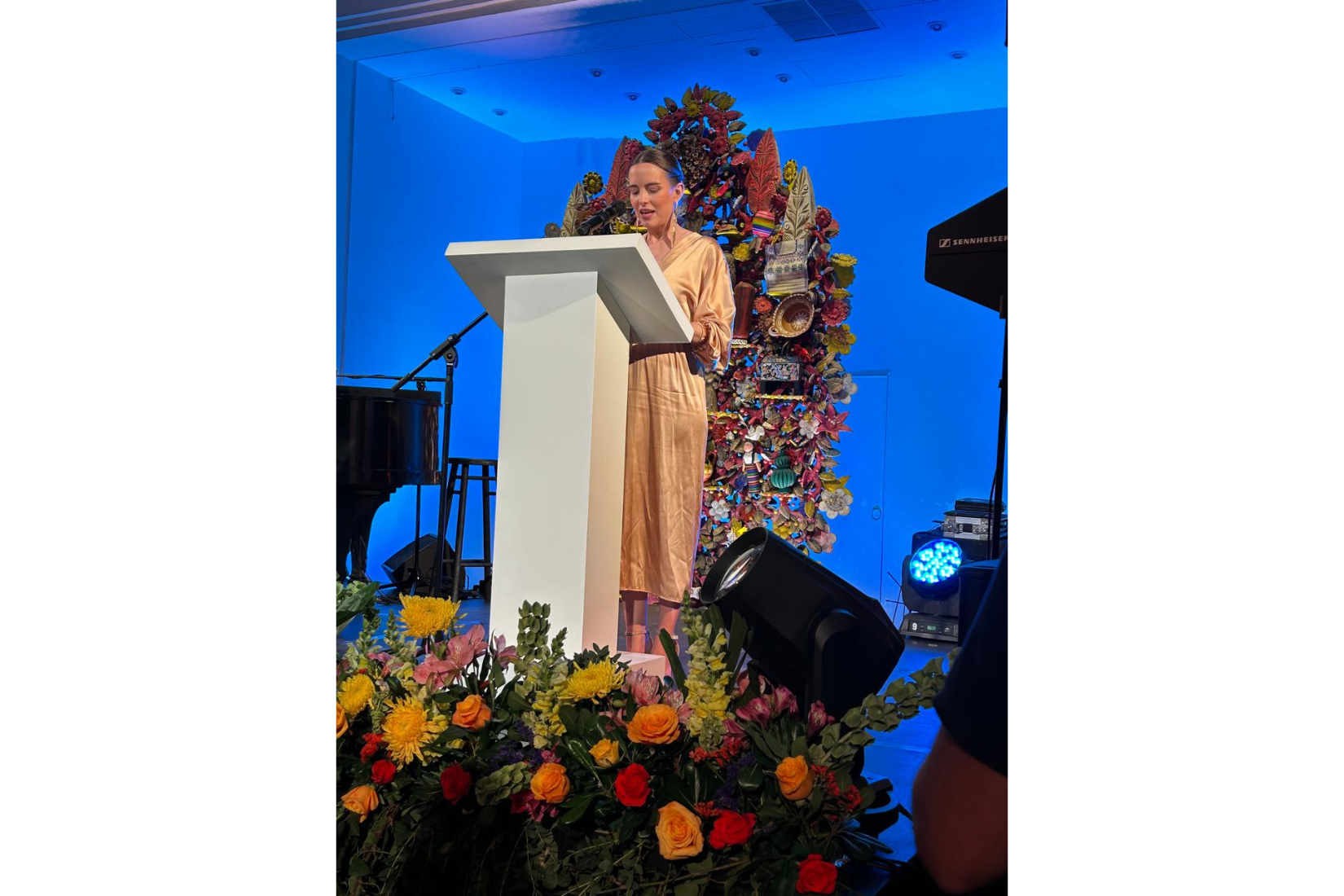 Paula Arango, coordinadora del Comité de Eventos Especiales de AmigosMAP, dio palabras de bienvenida al evento del 25 aniversario de AmigosMAP. (Foto: AmigosMAP).