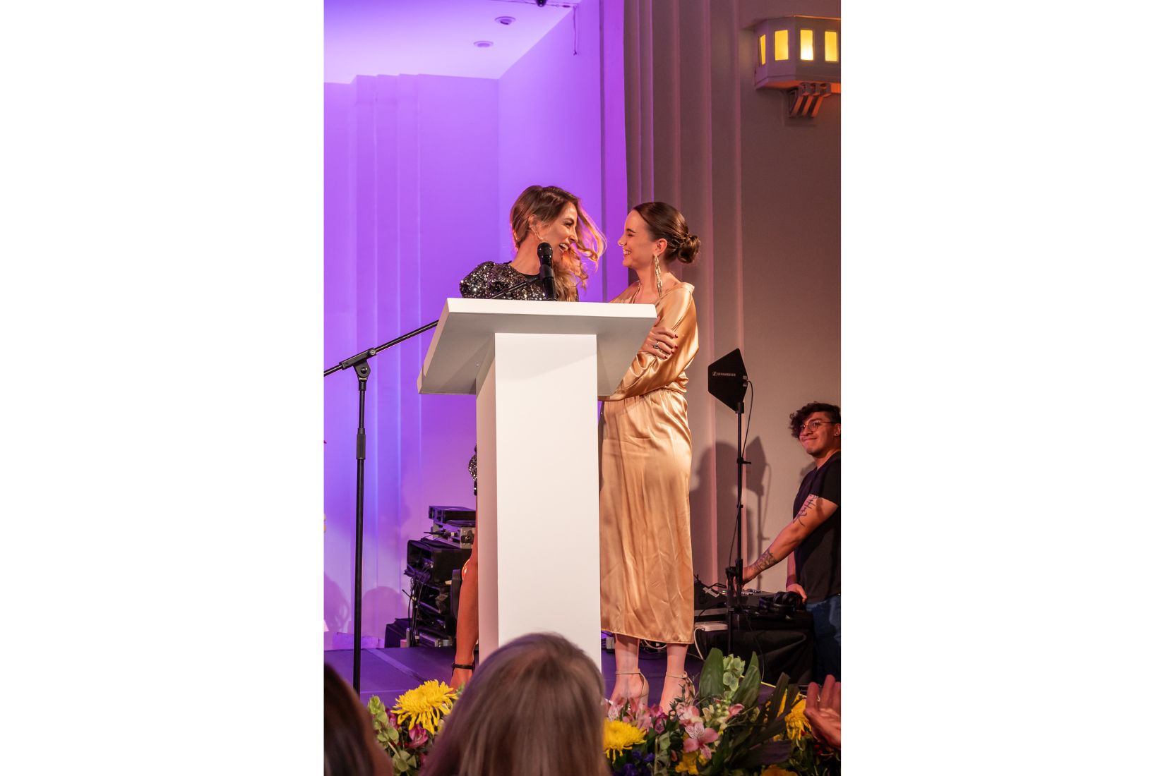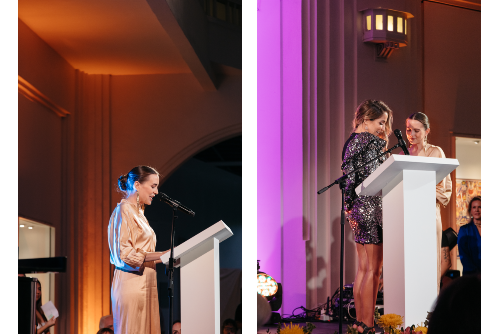 Paula Arango y Mercedes Vigil en palabras de agradecimiento en el 25 Aniversario de AmigosMAP. (Foto: AGBA Weddings)