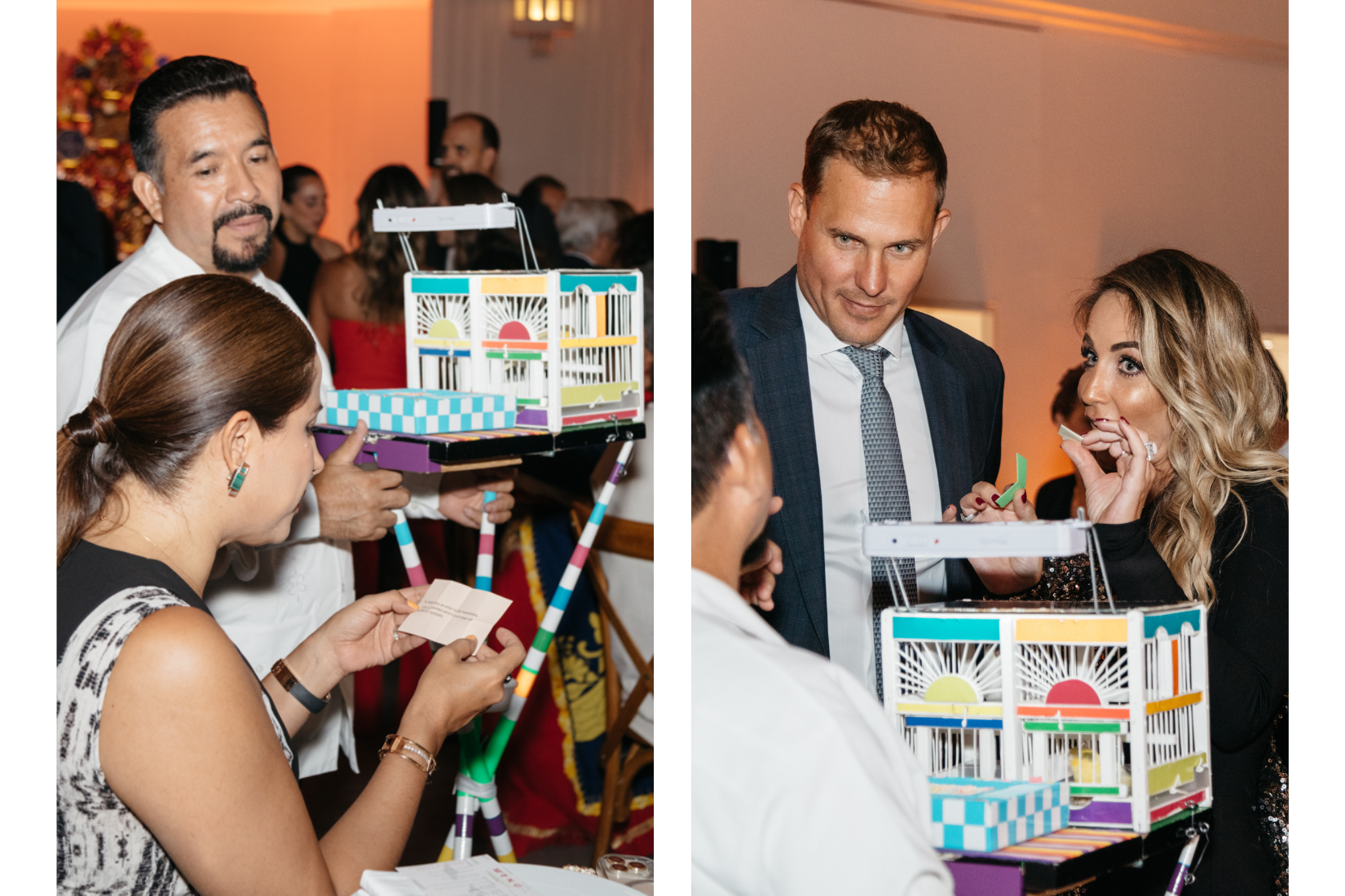Zaira Zepeda y Paula arango, miembros del patronato de AmigosMAP con pajarero en el 25 Aniversario de AmigosMAP. (Foto: AGBA Weddings)