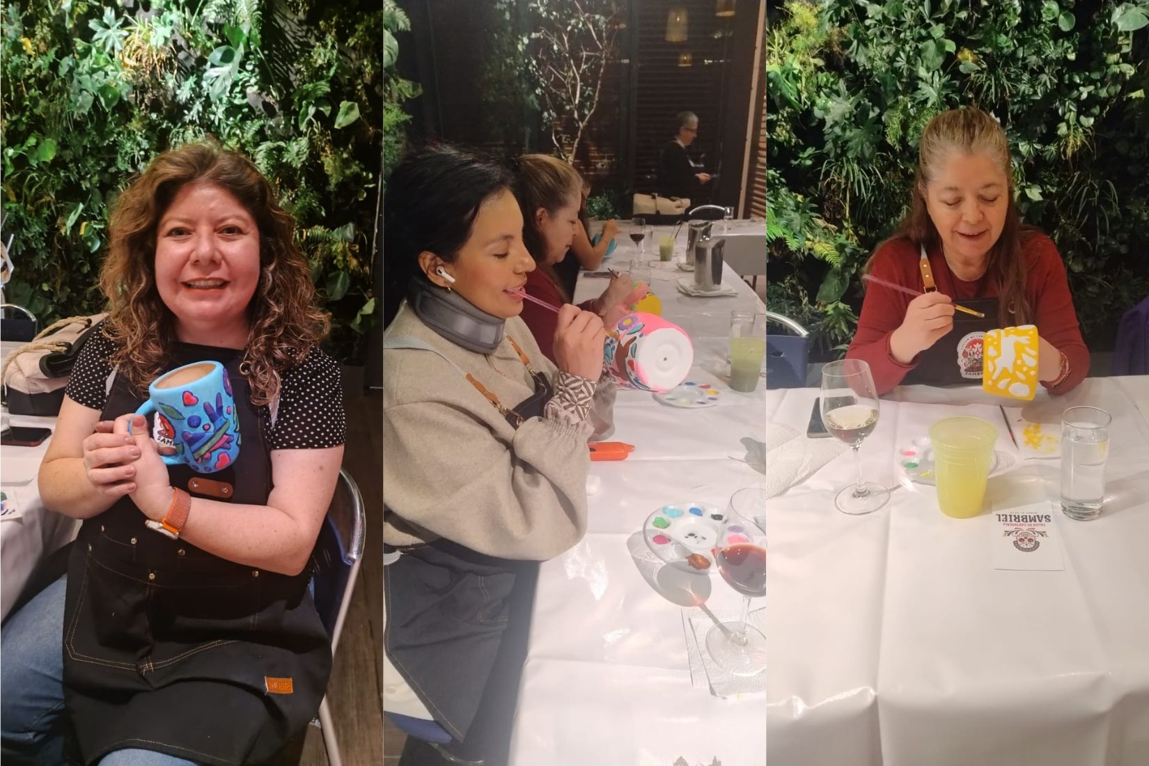 El miércoles 12 de febrero se llevó a cabo el taller «Pinta y Brinda» con la maestra artesana Samantha Escamilla, en el que los asistentes tuvieron la oportunidad de decorar, con pintura acrílica, una taza o una maceta de cerámica con diseños de Tenango, todo mientras disfrutaban de una copa de vino.