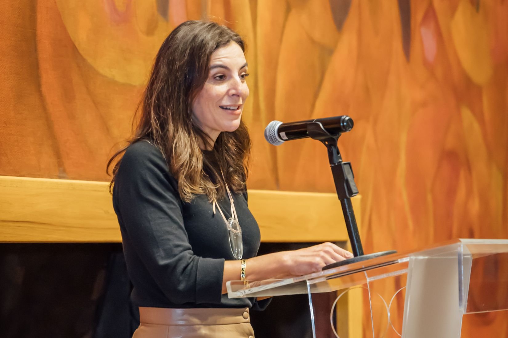 Ana López Mestre, consejera del Club de Industriales, dando la bienvenida a los asistentes al concierto clausura de la Semana de AmigosMAP. (Foto: Einar González).