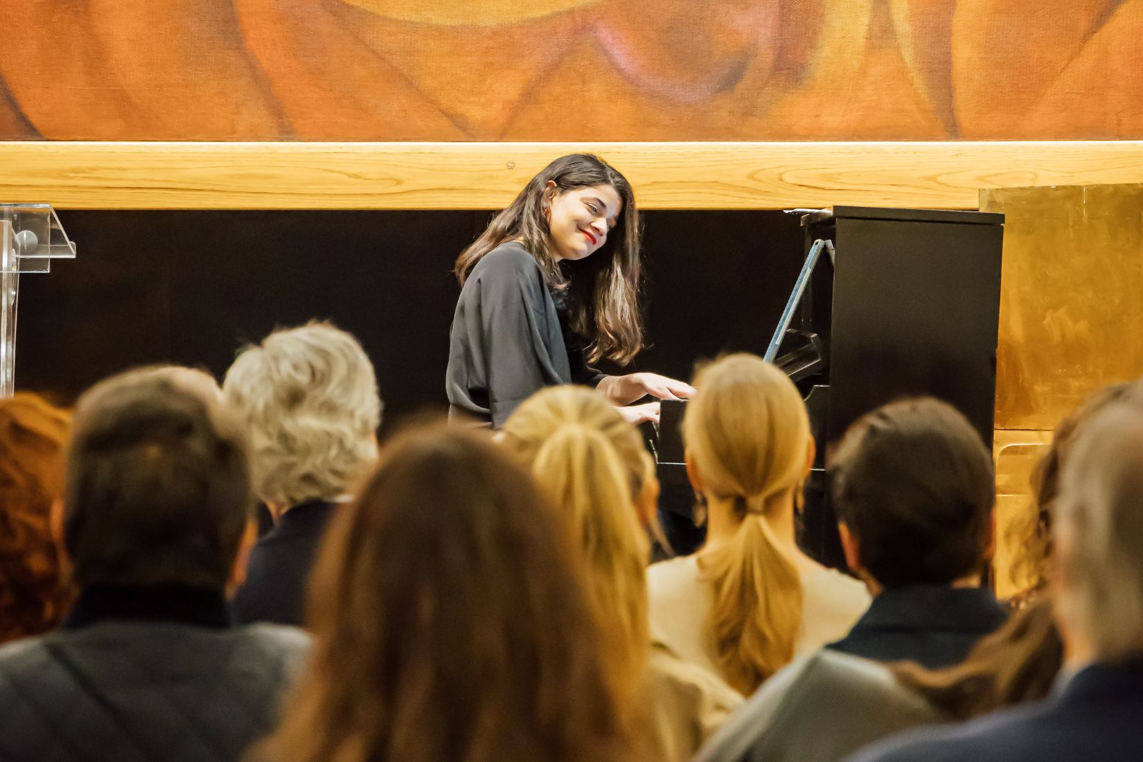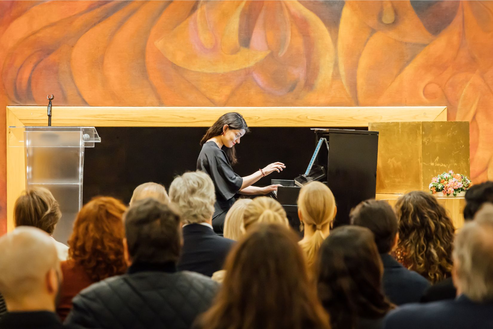 Para concluir la Semana de AmigosMAP, el jueves 13 de febrero se celebró el concierto de clausura con la destacada pianista Ana Gabriela Fernández. La velada comenzó con Ana López Mestre, consejera del Club de Industriales, quien dio la bienvenida a los asistentes en representación de Luis Téllez, y presentó a Mercedes Vigil, presidenta del Patronato de Arte Popular, quien dirigió unas palabras antes de presentar a la invitada especial: la talentosa pianista y Embajadora de AmigosMAP, Ana Gabriela Fernández.
