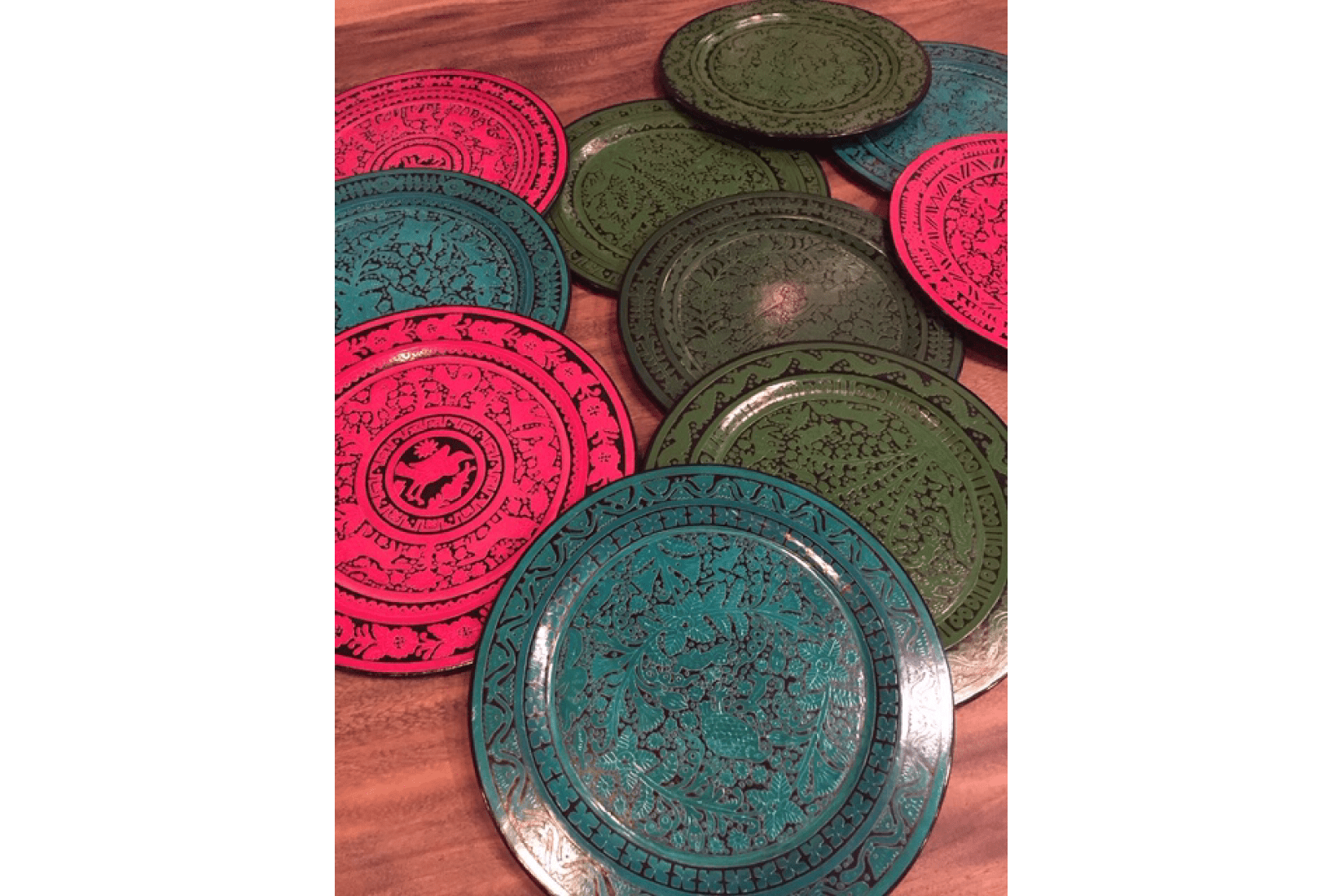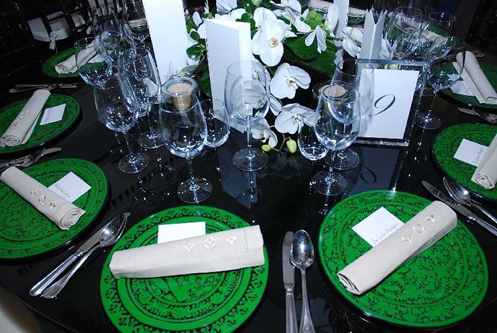 Decoración de mesas con bajo platos de maque y laca en la cena Louis Vuitton en el Museo de Arte Popular. (Foto: AmigosMAP).
