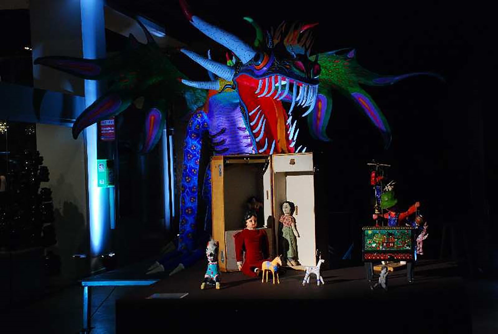 Montaje de la cena Louis Vuitton con piezas de arte popular en el Museo de Arte Popular. (Foto: AmigosMAP).