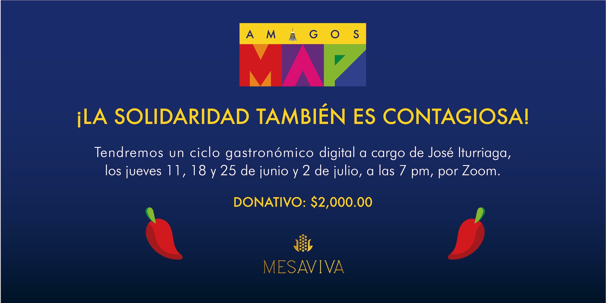 En medio de la contingencia sanitaria de 2020 en AmigosMAP ideamos una nueva modalidad del programa de recaudación de fondos con un ciclo gastronómico a cargo de José N. Iturriaga, con muy amenas charlas amenas relacionadas a la gastronomía, las cuales se transmitieron vía zoom.