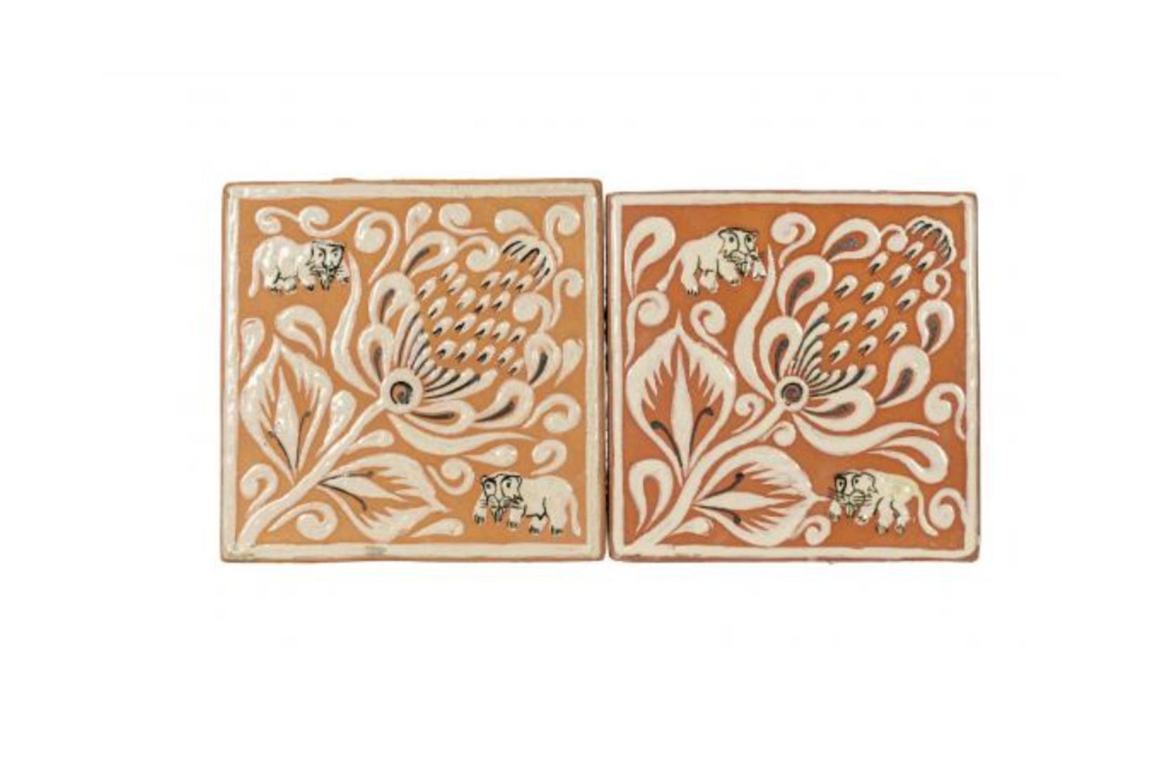 El lote 817 estuvo conformado por un conjunto de 15 azulejos de barro bruñido con acabado vidriado de plomo y estaño policromado, los cuales fueron parte de una colección diseñada por el Arq. Marco Aldaco (Guadalajara 1933 – Jalisco 2013) y elaborados por artesanos de Tonalá, Jal. en los años 70.