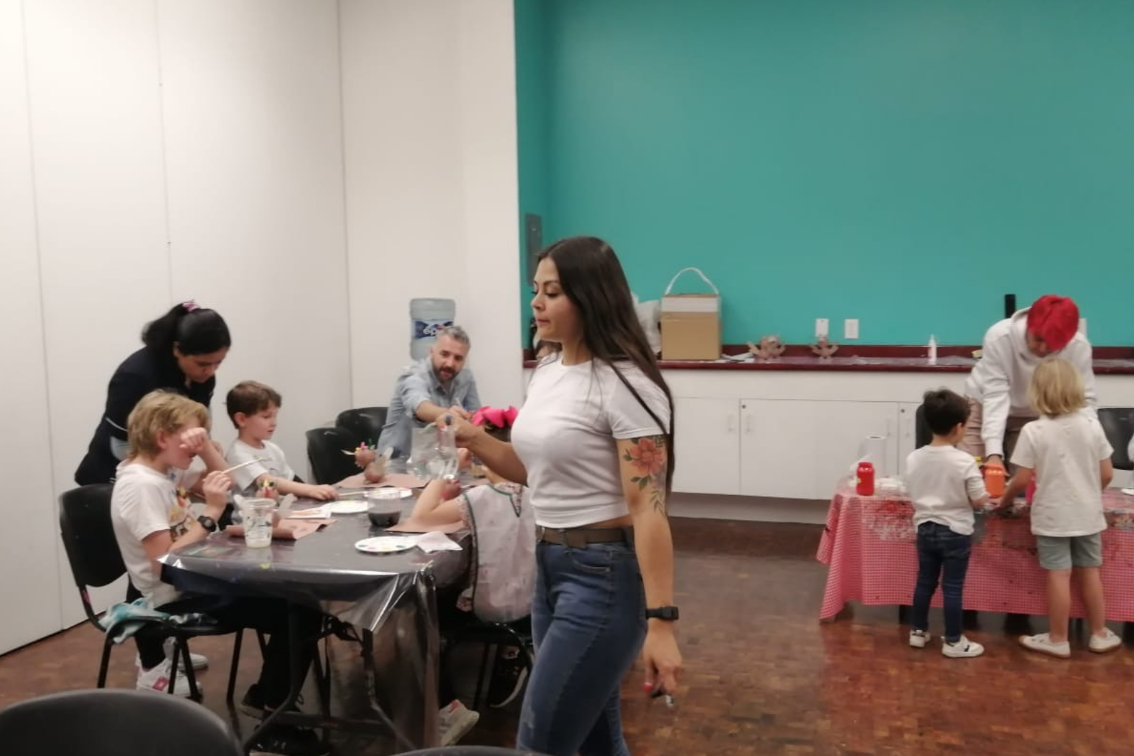 Durante la charla con los artesanos, los hijos de algunos miembros del patronato pudieron disfrutar un taller con la artesana de cartonería Devany Gutiérrez, donde pudieron pintar su propio alebrije.