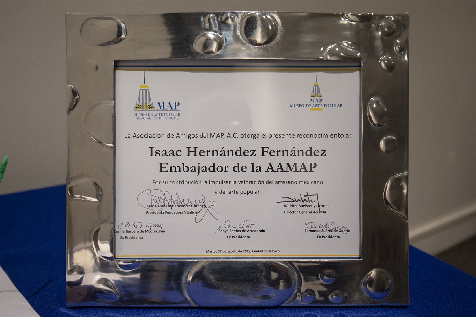 Felíz y con el carisma que lo distingue, Isaac dijo sentirse honrado por la oportunidad de contribuir al impulso de la valoración del arte popular y el trabajo de sus artesanos, “es algo que me apasiona y lo he hecho a través de todos estos años. He tratado de llevar a México al mundo y traer el mundo a México”.