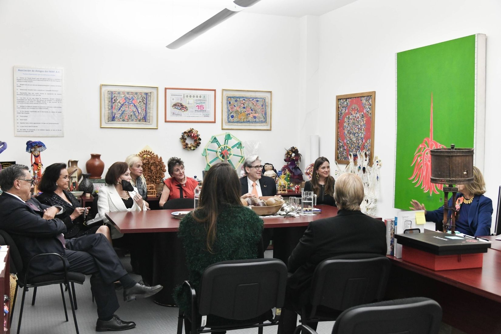 Miembros de AmigosMAP dieron la bienvenida a la participación de la comunidad de la UM y nombraron al Dr. Frenk Embajador de la Asociación, mientras que Marie Thérèse Hermand de Arango, presidenta fundadora vitalicia de AmigosMAP destacó la importancia de preservar las tradiciones de México y al mismo tiempo alentar a los artesanos a innovar.