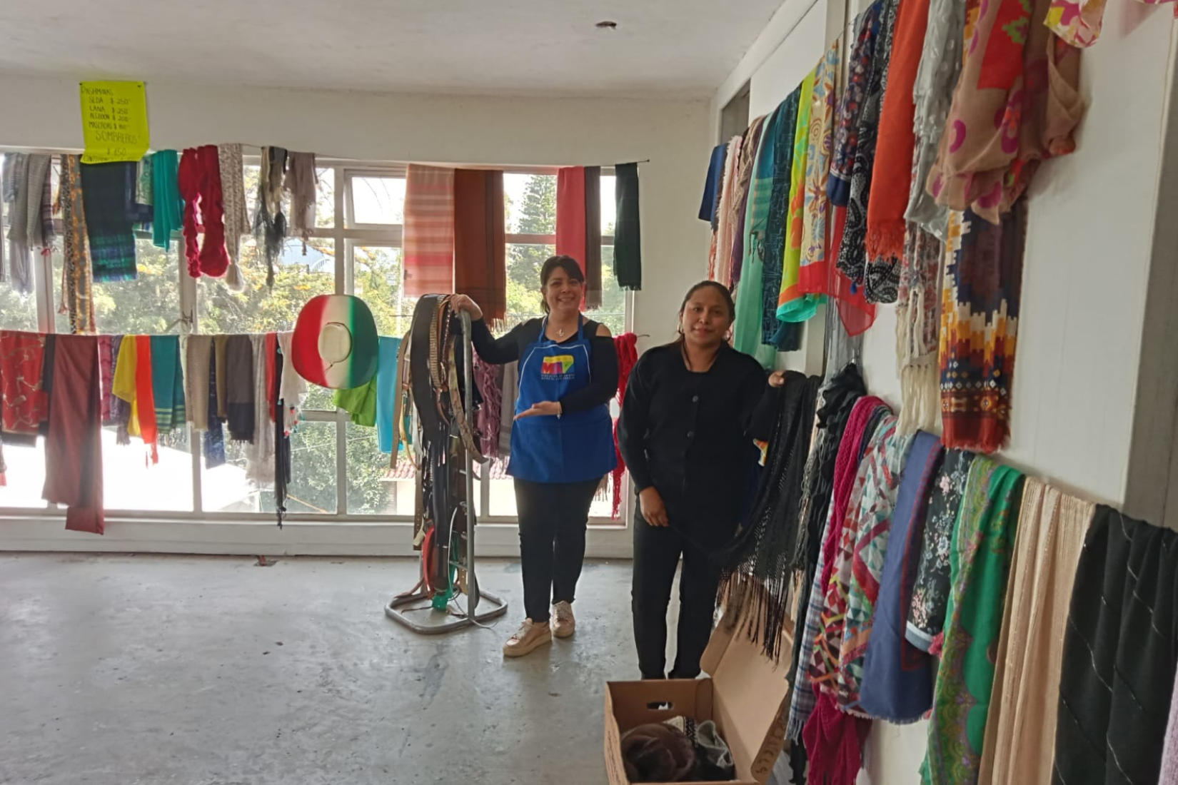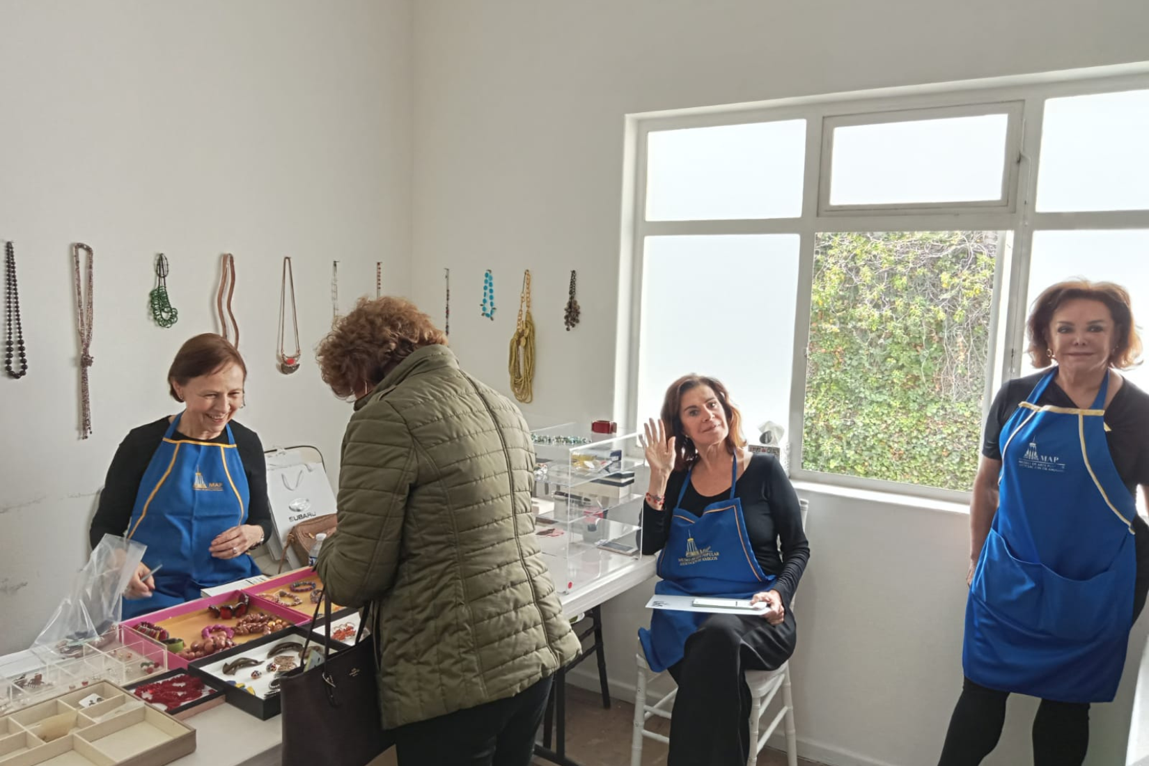 Marisela Víquez y acompañante en el departamento de accesorios del Vintage 2023. (Foto_ AmigosMAP)