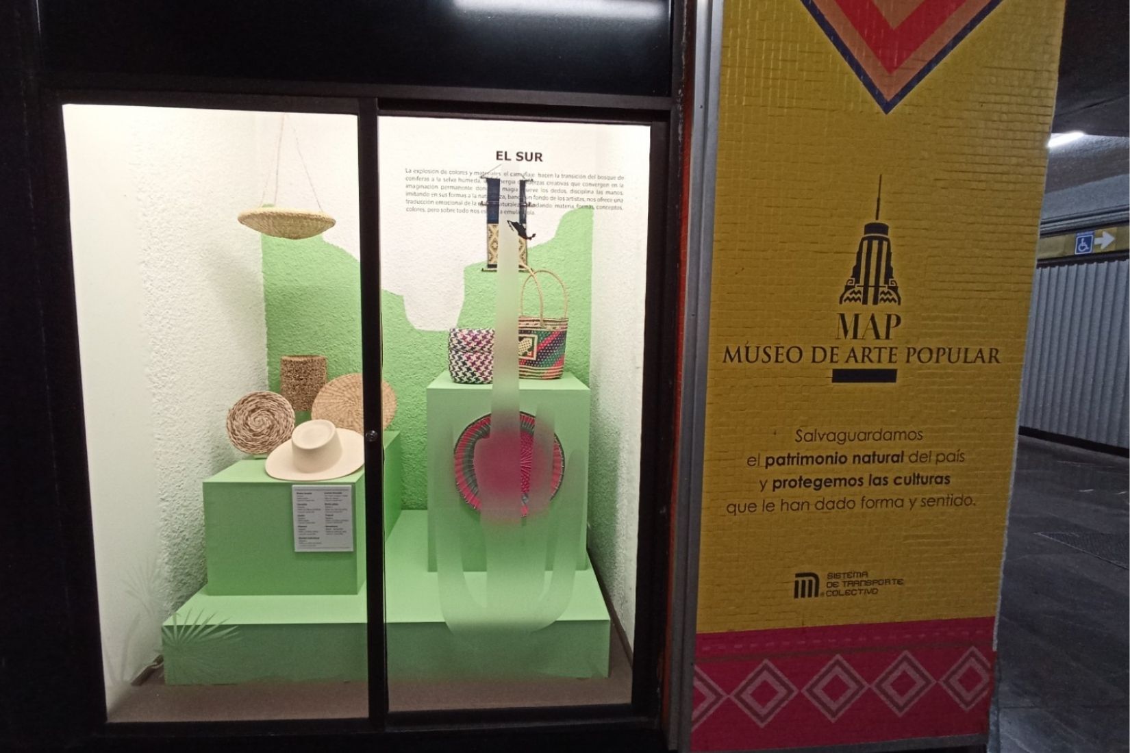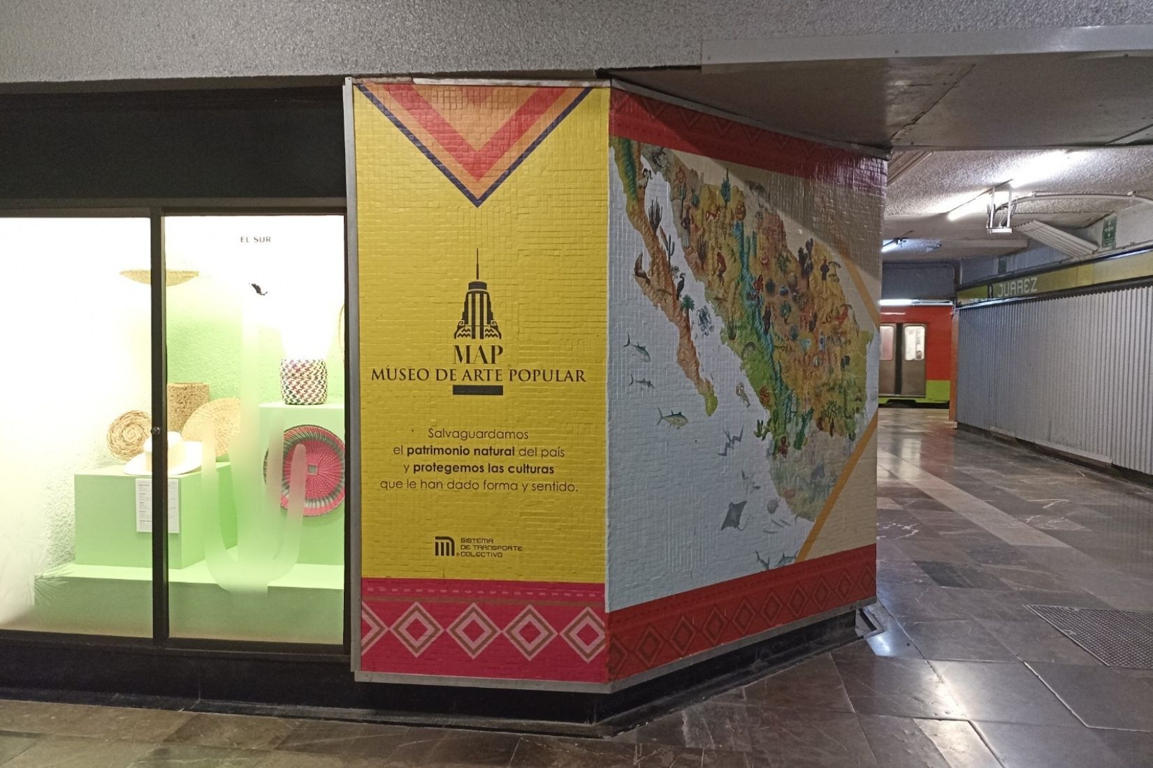 El miércoles 26 de enero en punto de las 11:30 horas se llevó a cabo la Inauguración de la exposición “Norte, Centro, Sur” del Museo de Arte Popular (MAP) en las Vitrinas de la Estación Juárez de la Línea 3 del Metro en la Ciudad de México.