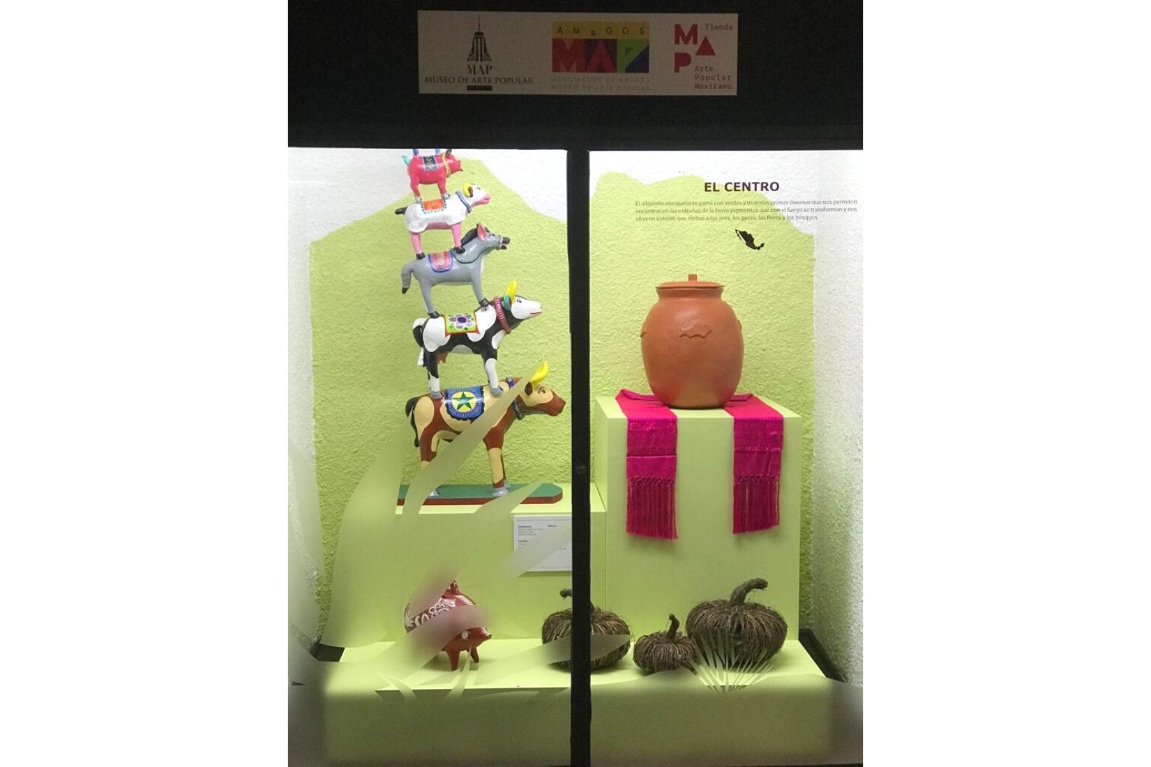 Vitrinas con piezas de arte popular en Metro Juárez. (Foto: AmigosMAP).
