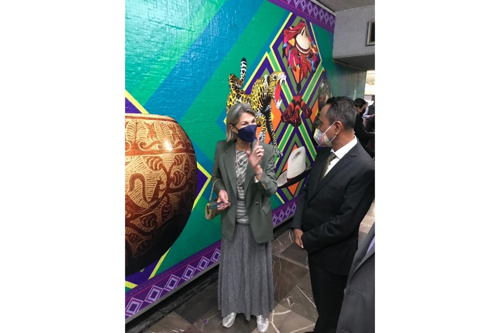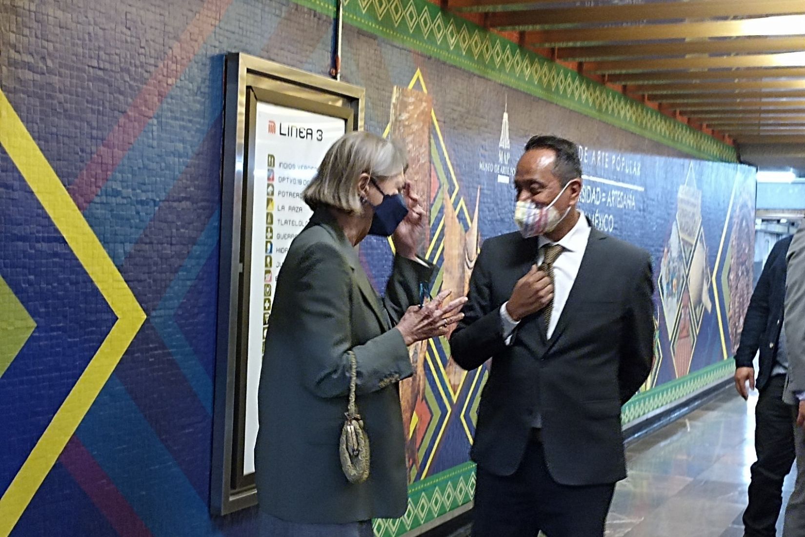 Gracias a la gestión de la Sra. Cecilia Barbará de Moctezuma, Presidenta de la Asociación de Amigos del MAP, A.C. (AmigosMAP) y de las autoridades del Metro, se pudo lograr esta exposición. La Sra. Moctezuma agradeció por permitir la difusión de “Norte, Centro, Sur” y enfatizó que la Estación Emblemática es el mejor lugar para mostrar el arte y biodiversidad de nuestro país, porque las artesanías son parte de nuestra vibrante cultura y raíces.