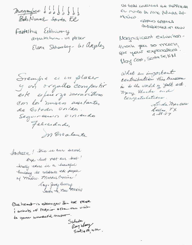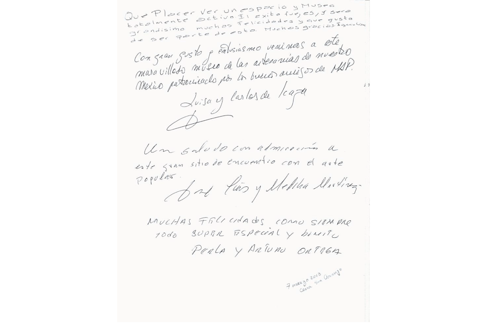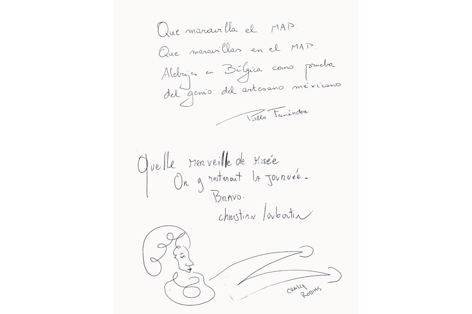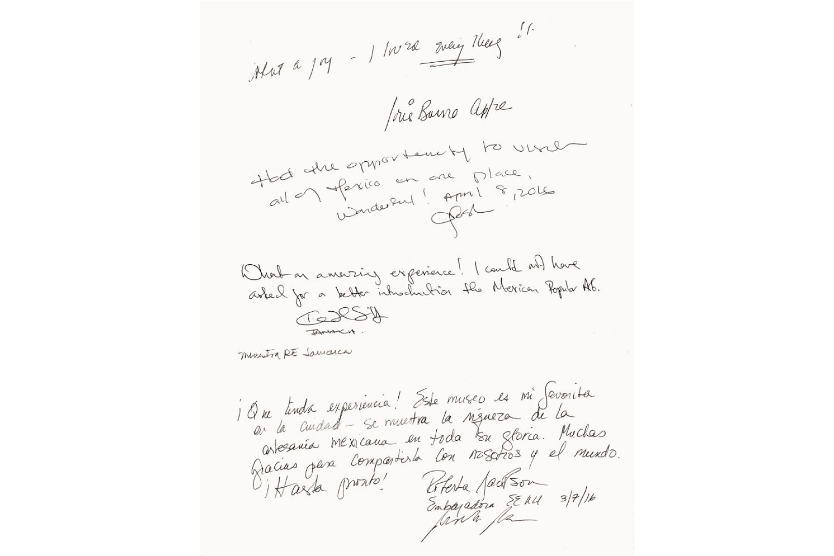 Con el objetivo de guardar registro de las personalidades que han visitado el MAP, se les pide dejar algún comentario y su firma en el libro de visitantes distinguidos, donde personalidades como Gabriel García Márquez, Carlos Fuentes, Guillermo del Toro, entre muchos otros, han dejado su firma y memorias de su visita al Museo de Arte Popular.