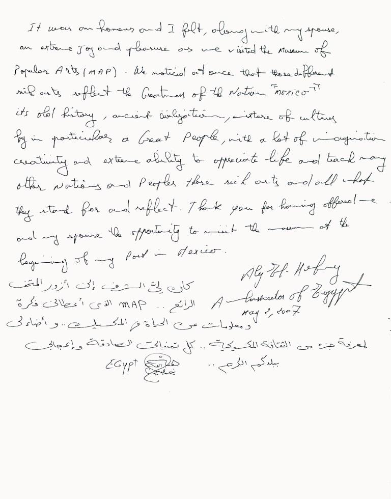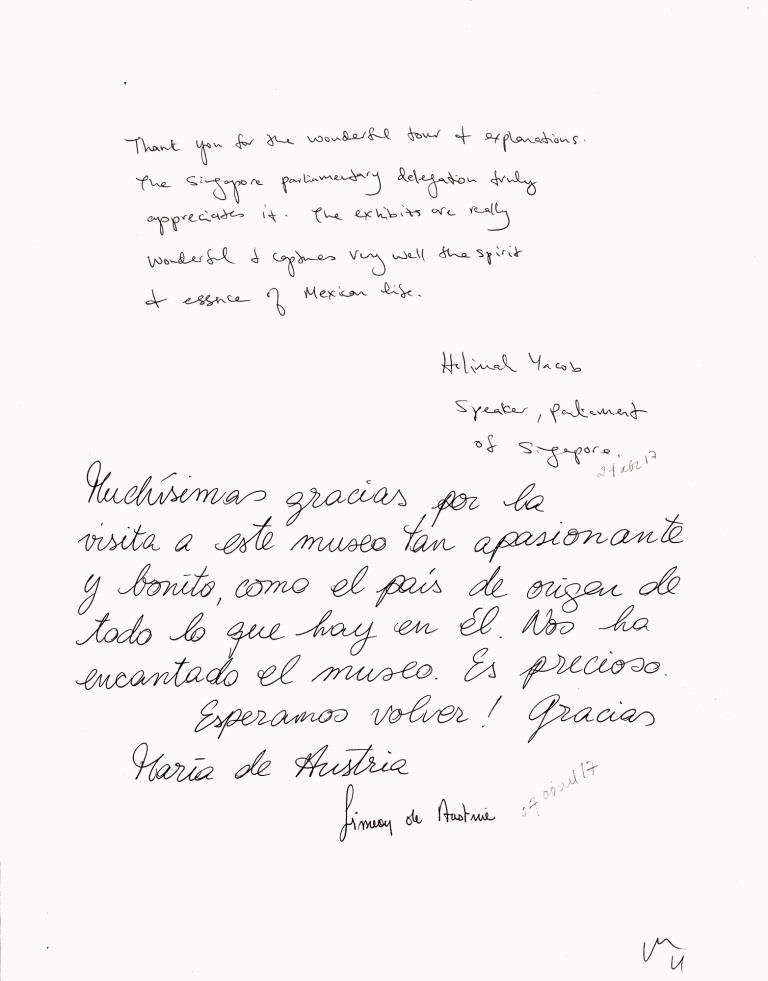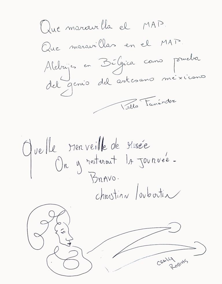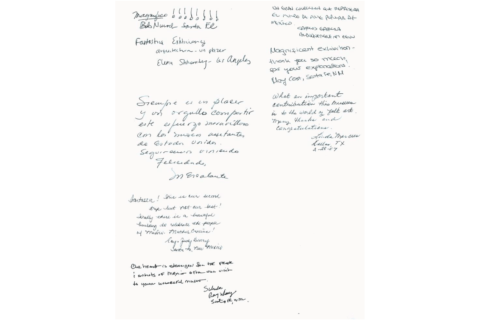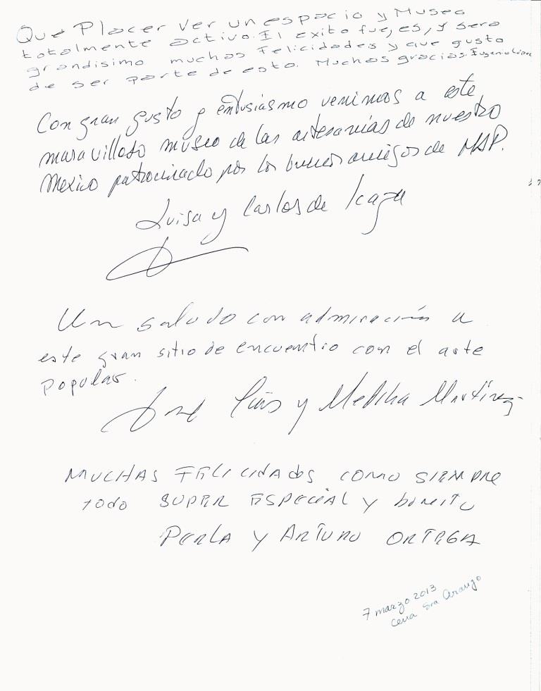 Con el objetivo de guardar registro de las personalidades que han visitado el MAP, se les pide dejar algún comentario y su firma en el libro de visitantes distinguidos, donde personalidades como Gabriel García Márquez, Carlos Fuentes, Guillermo del Toro, entre muchos otros, han dejado su firma y memorias de su visita al Museo de Arte Popular.