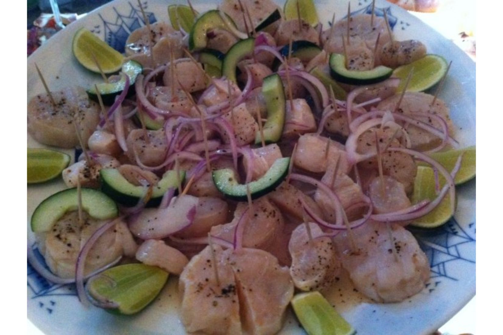 De gran fama es el callo de hacha media luna, el más fino de la región, que se prepara con la misma técnica culinaria del aguachile, es decir con jugo de limón fresco, cebolla en rebanadas, pepino en rodajas y chile verde.