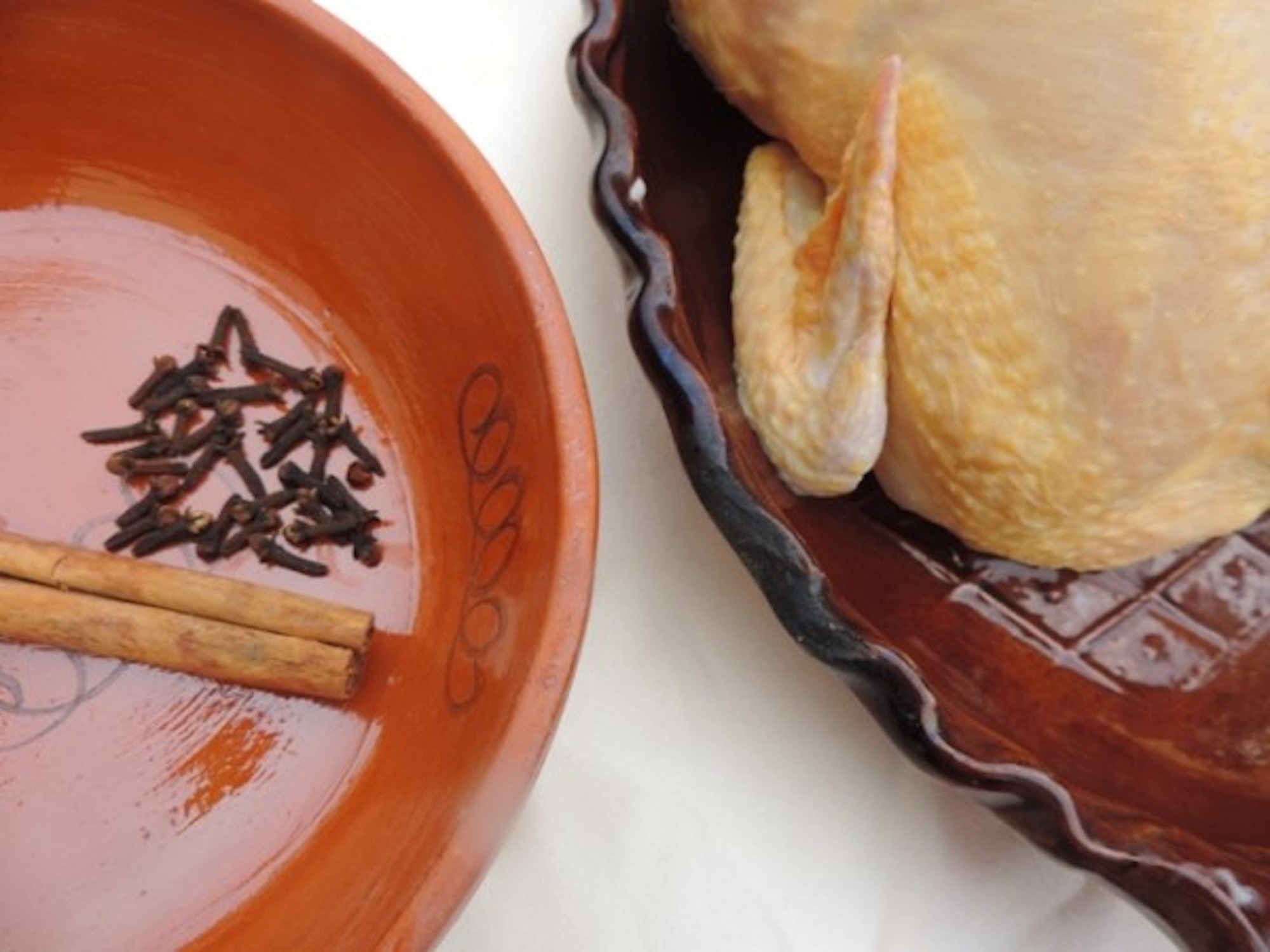 “Hervirás unas gallinas y las harás cuartos [descuartizar]; fríe cebolla picada menuda con tocino en dados, échalos encima de la carne en su cazuela, échales del mismo caldo en que las sancochaste, con vino, vinagre, pimienta, clavo, jengibre, canela, azafrán y sal, y ponla al fuego”.
