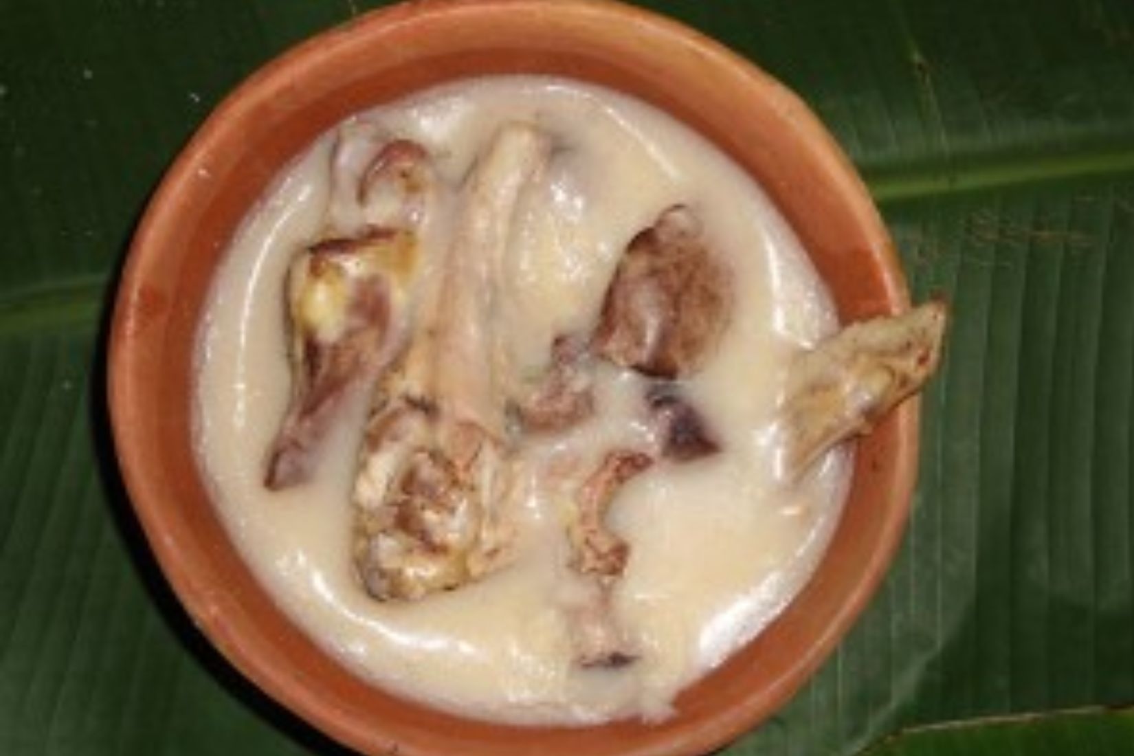 Cueza el pollo en el agua necesaria con dos dientes de ajo y un cuarto de cebolla. Reserve tanto el pollo como el caldo. Después muela el otro diente de ajo, previamente pelado, con la cebolla restante y los jitomates. Fría esta salsa en una cacerola con la manteca caliente y añada el pinole, para espesarla. Cuando suelte el hervor vierta dos tazas del caldo junto con las piezas de pollo. Sazone con sal y deje la preparación al fuego hasta que espese. Sirva este platillo muy caliente.