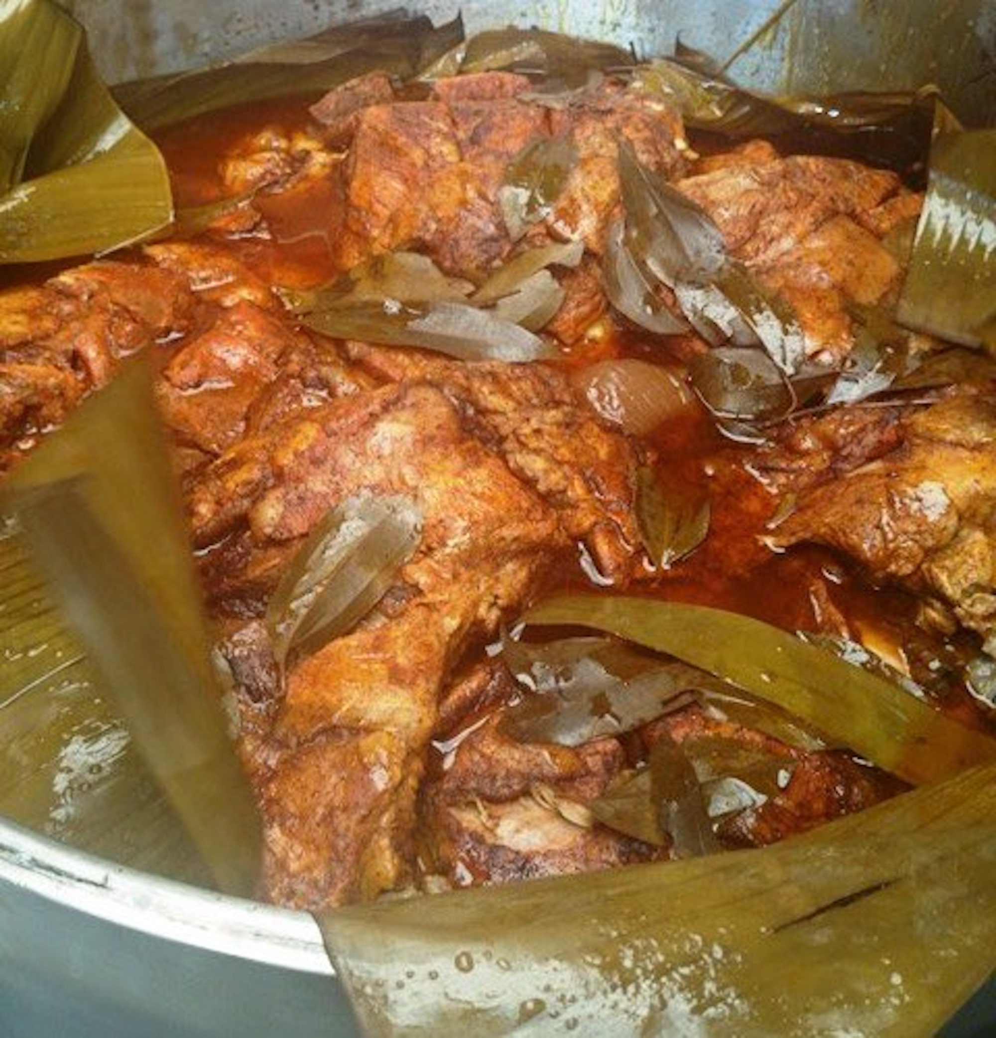 Se hace un cuadrante en la tierra y se ahonda como un metro de profundidad; se le ponen unos carbones encendidos y bastante leña seca, y piedras grandes; cuando ésta se encienda, se le pone mucho más. De manera que quede el cuadrante completamente lleno de leña y se sopla para que haga llama; cuando esté encendida, se deja que prenda toda la leña y cuando ésta esté completamente roja lo mismo que las piedras se dejan hasta que se consuma. Entonces se saca todo el palo que eche humo, sin dejar ni uno; se coloca la olla en medio, se cubre bien unas pitas mojadas y se vuelve a tapar el cuadrante con la tierra que se le sacó. Después de tres horas, ya se puede sacar la cochinita. No debe dejarse más tiempo, porque se quema. Igual se hace cuando se quieren hacer pollos en pibil.