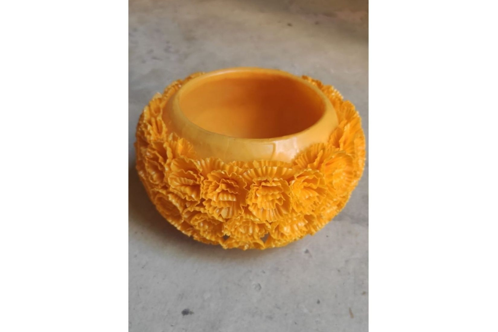 Cazuelita de cera escamada para vela. Artesano y procedencia desconocidos. Col. Marie Thérèse Hermand de Arango.