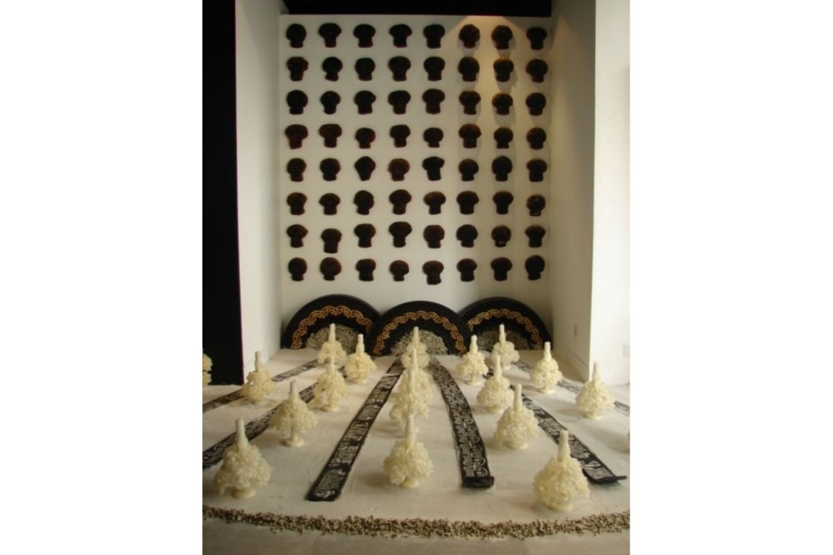 Instalación La muerte de los matices. Cera, papel picado y calaveras de azúcar intervenidas. Artesana Betsabé Romero. CDMX. Col. del autor. (Foto: Dylan Von Gunten).