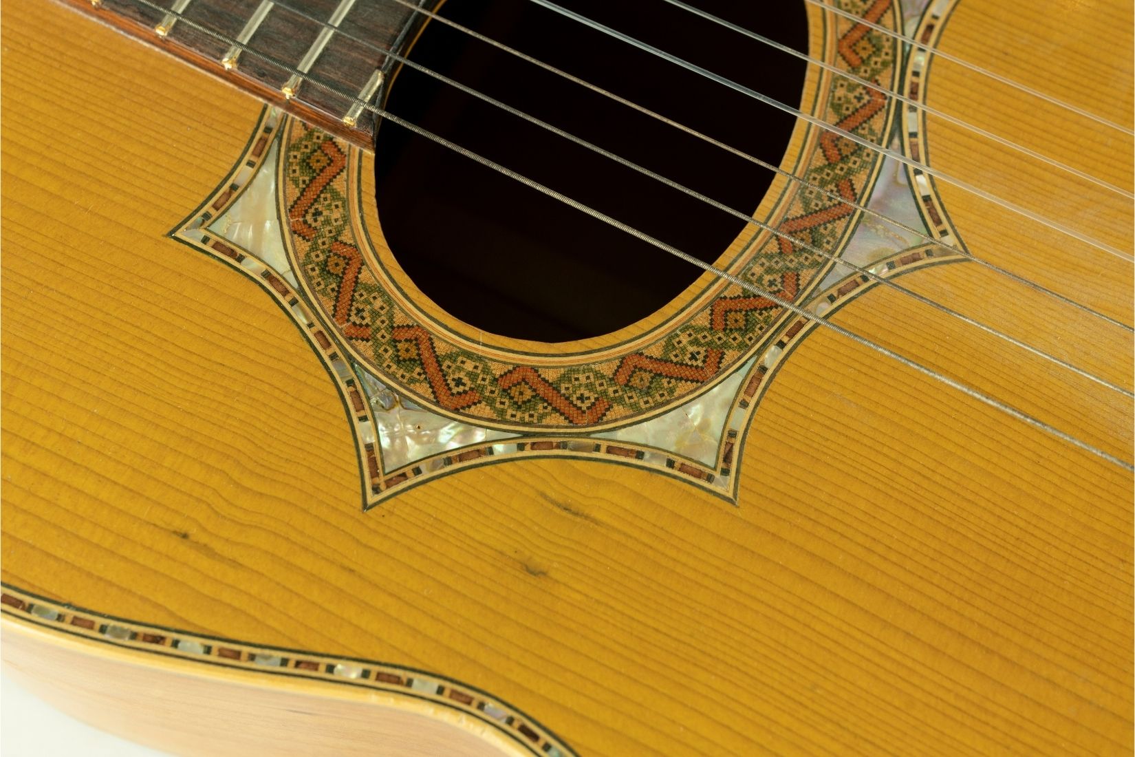 Guitarra séptima. Madera ensamblada con incrustación de concha. Artesano Fructuoso Zalapa Luna. CDMX. Col. Part. (Foto: EKV).