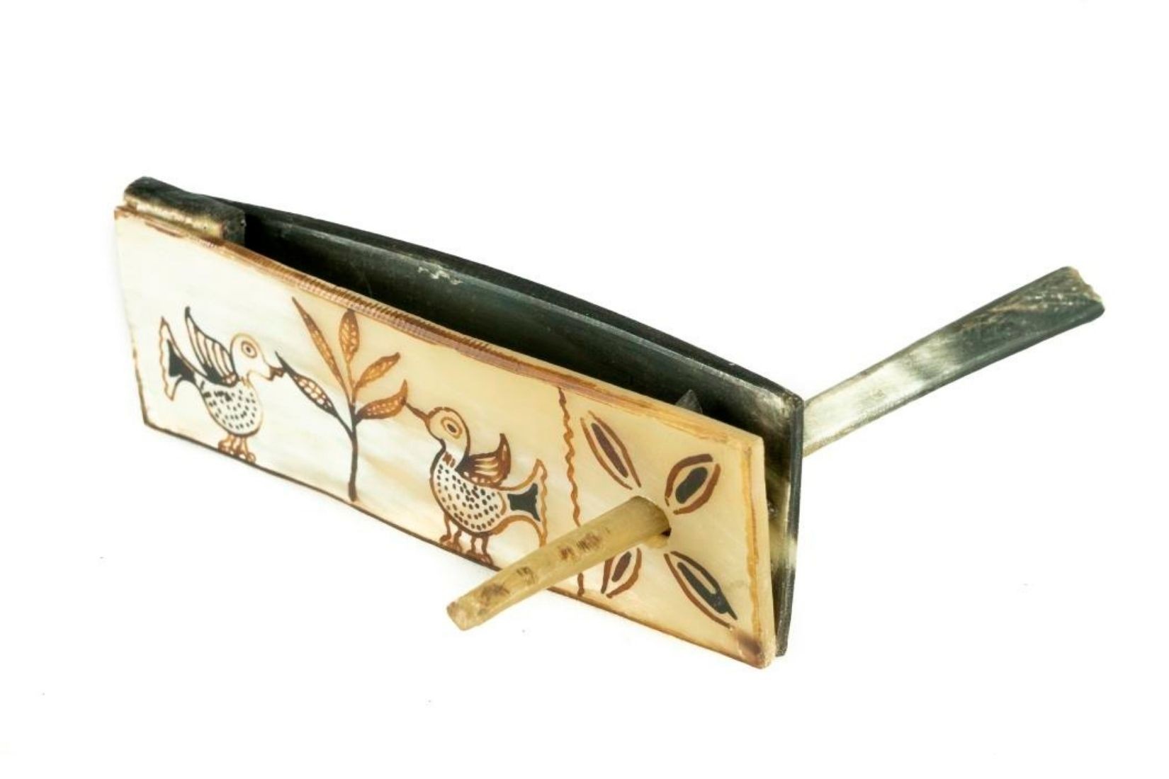 Matraca de cuerno recortado y esgrafiado. Artesano y procedencia desconocido. Col. Populart. (Foto: Estudio Kristina Velfu, EKV).