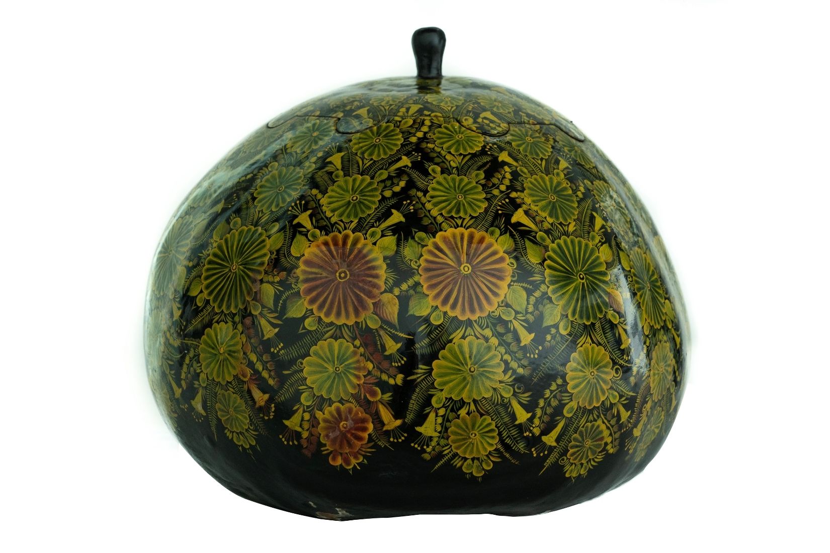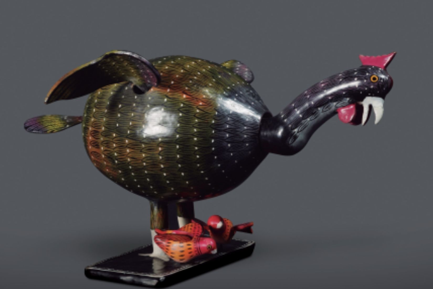 Gallina de laca decorada al óleo. Artesano José Romano Malquiadez. Olinalá, Gro. Col. Part. (Foto: Jasso).