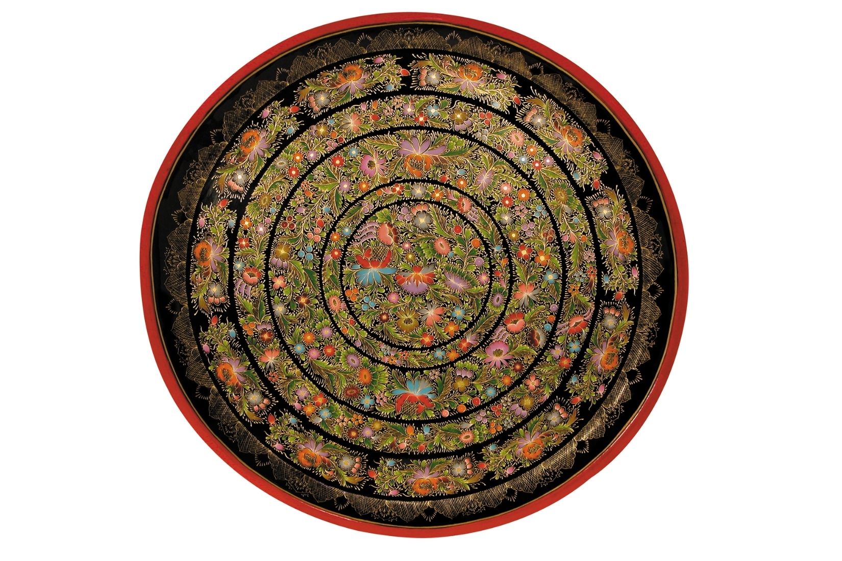 Batea grande de madera con maque perfilada en oro. Artesano Jorge Molina Molina. Pátzcuaro, Mich. Col. Part. (Foto: Nicola Lorusso).