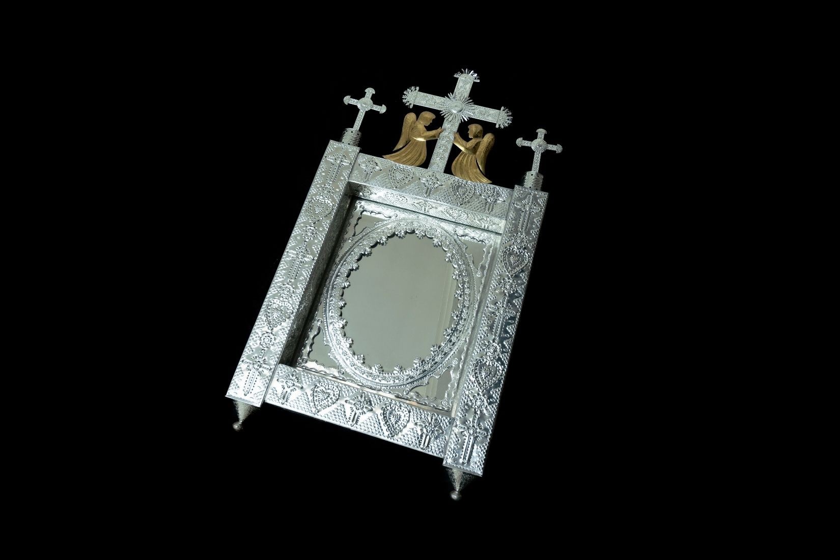 Metalistería Charro y bailarina. Artesano desconocido. Oaxaca, Oax. Col. Miguel Abruch. (Foto: GLR Estudio). Porta velas de hojalata recortada y repujada. Artesano desconocido. Oaxaca. Col. Miguel Abruch. (Foto: GLR Estudio). Alhajero de latón repujado. Artesano Enrique Zavala. CDMX. 1989. Col. Part. (Foto: EKV). Cajas antiguas para rapé. Hojalata repujada. Col. Marie Thérèse Hermand de Arango. Cesto de alambre tejido. Artesano y procedencia desconocidos. Col. Yoje Tapuach. (Foto: EKV). Portarretrato de lámina repujada y ensamblada. Artesano y procedencia desconocidos. Col. Yoje Tapuach. (Foto: EKV). Vasija con diseño de armadillo. Cobre martillado y cincelado. Artesano Román Punzo Cazarez. Santa clara del Cobre, Mich. Col. Part. (Foto: EKV). Marco con lámpara. Hojalata repujada y calada. Artesano Víctor Hernández Leyva. Oaxaca, Oax. Col. Part. (Foto: EKV). Virgen de hojalata recortada y pintada. Artesano desconocido. CDMX. Donante Jan Hendrix. Col. AmigosMAP. (Foto: Estudio Kristina Velfu, EKV). Cristo crucificado. Artesano y procedencia desconocidos. Donante Jan Hendrix. Col. AmigosMAP. (Foto: EKV). Milagritos de plata y cobre montados sobre bastidor de tela. Artesano desconocido. CDMX. Col. AmigosMAP. (Foto: Jasso). Hombre hincado. Artesano y procedencia desconocidos. Col. Marie Thérèse Hermand de Arango. (Foto: EKV). Corona de metal con cuentas de vidrio. Artesano Alejandro López García. Aguascalientes, Ags. Col. Part. (Foto: EKV). Machetes de acero trabajado. Artesano Agustín Cisneros. Oaxaca, Oax. Col. Part. (Foto: Silvana Agostoni). Platón de cobre martillado. Artesano y procedencia desconocidos. Col. Populart. (Foto: EKV). Estrella de lámina recortada y ensamblada. Artesano y procedencia desconocidos. Col. Yoje Tapuach. (Foto: EKV). Tráiler de carga. Lámina doblada, soldada y esmaltada. Artesano y procedencia desconocidos. Col. MAP. (Foto: EKV). Camión de bomberos. Lámina doblada, soldada y esmaltada. Artesano y procedencia desconocidos. Col. MAP. (Foto: EKV). Mujer de Oaxaca. Plomo policromado. Artesano Teodoro Torres Orea, de Puebla. Col. Part. (Foto: EKV). Grillo de alambre de cobre doblad, recortado y engarzado. Artesano Germán Batalla. CDMX. 2015. Col. MAP. (Foto: EKV). Platón de cobre martillado. Artesano desconocido. Michoacán. Col. Elena Martínez de Aldana. (foto: EKV). Tecnica anterior Tecnica siguiente