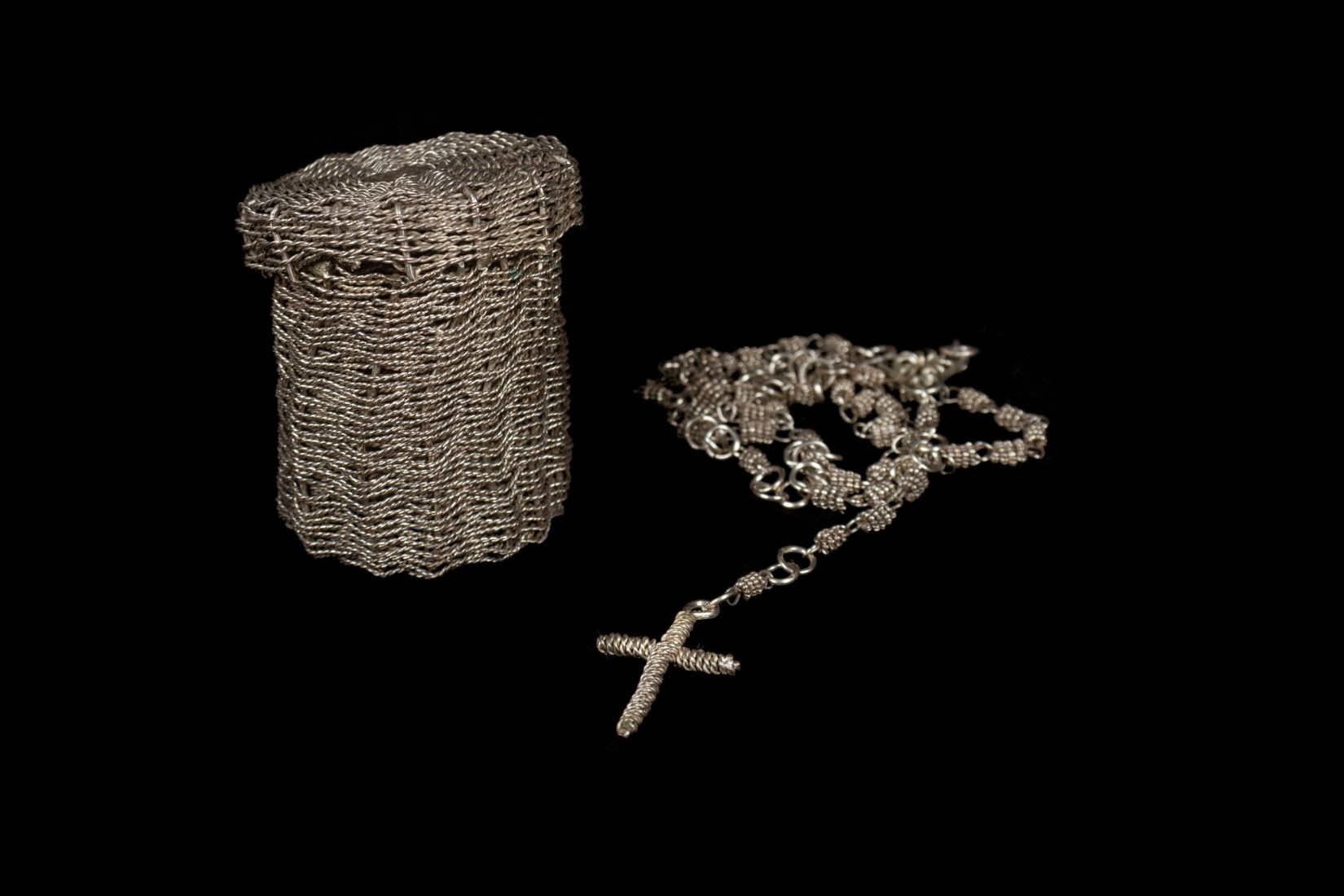 Tenate con rosario de filigrana de plata. Artesano desconocido. San Miguel de Allende, Gto. Col. Ma. Eugenia Bermúdez de Ferrer. (Foto: EKV).